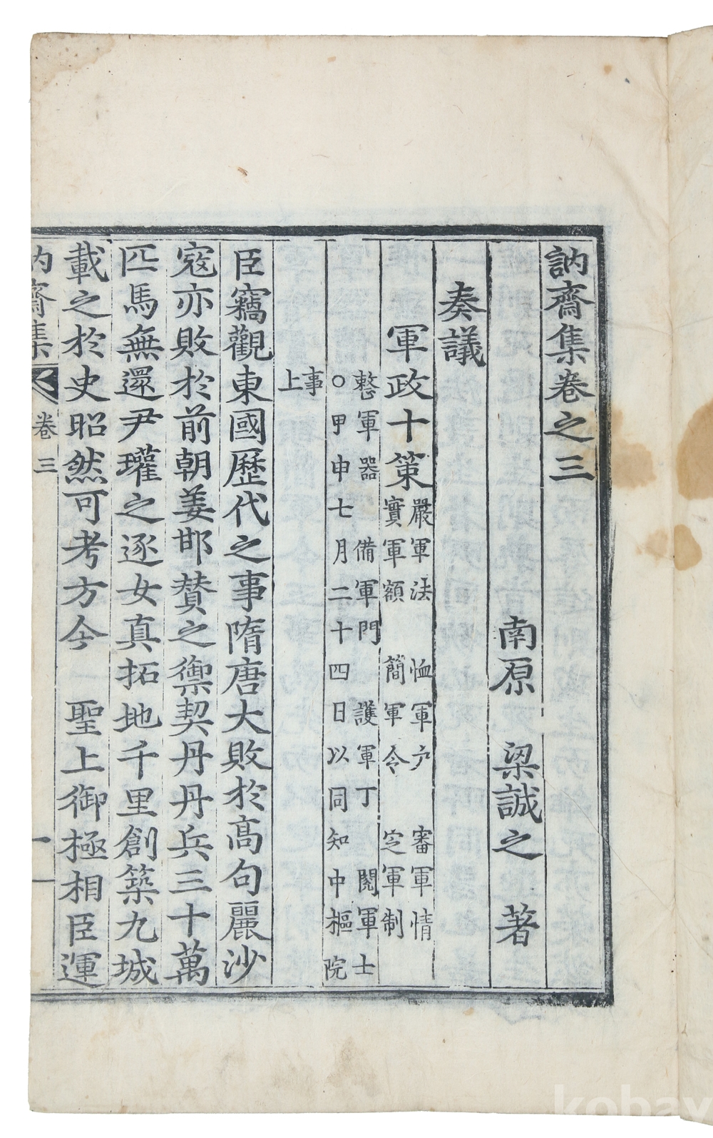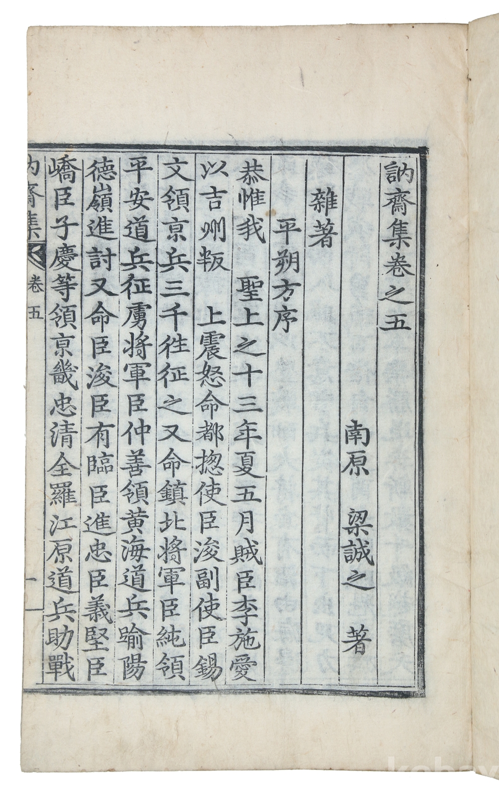 조선 전기의 문신이자 학자 梁誠之(1415 ~ 1482) 선생의 詩文集 丁酉字活字 飜刻木版本 [訥齋集] 전6권 전3책 완질본이다.