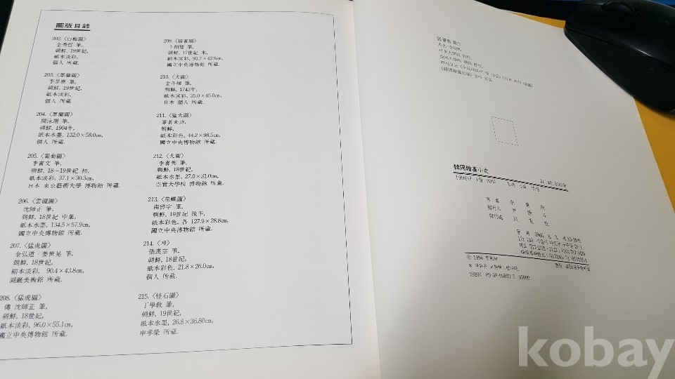 끝으로 그림의 역사는 역시 회화사적 의미를 갖는 그림과, 그 있는 곳을 밝혀야 된다는 문제로 인해 소장자의 허락없이는 있는 곳을 밝히고, 또 그 까닭으로 인해서 해석, 평가에 미묘한 문제가 있었음을 밝혀둔다. ( - 지은이 이동주 )