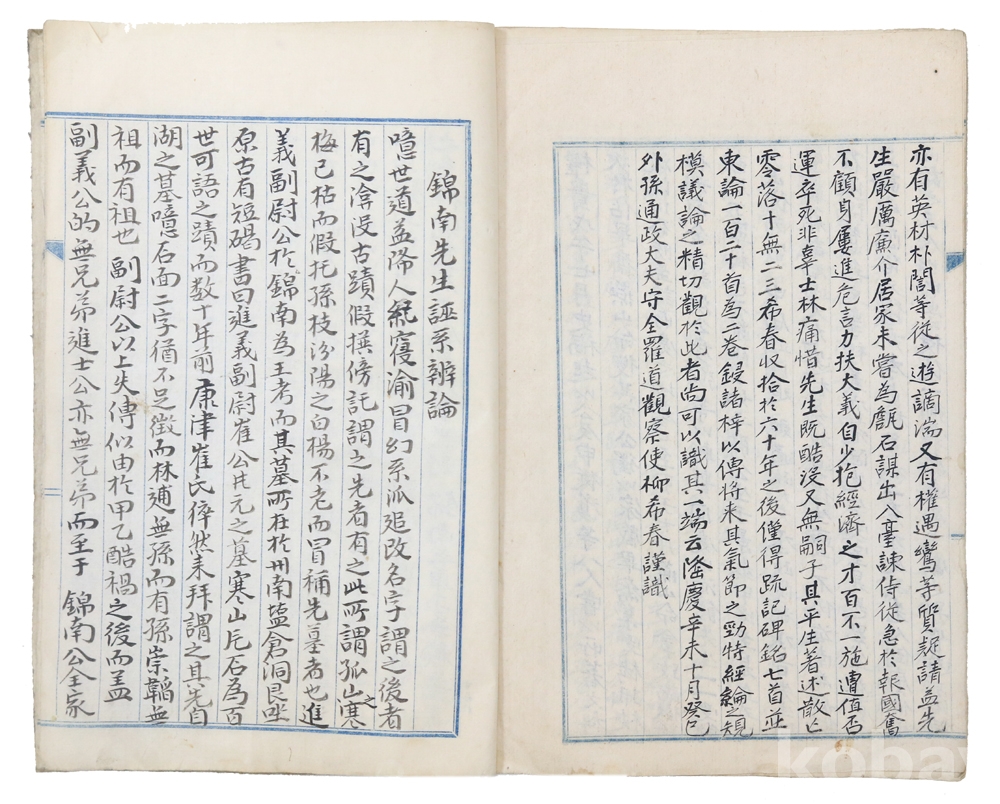 本文 後半部에는, “錦南先生誣系辨論”이라는 글이 筆寫되어 있다.
