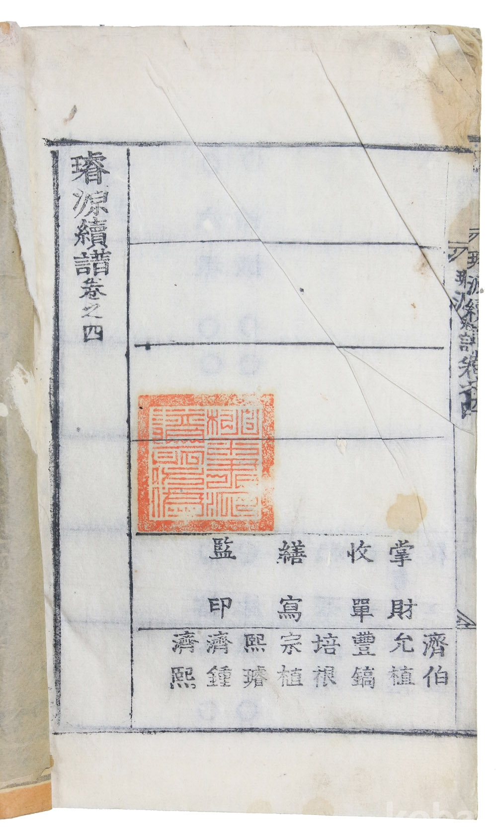 第4冊 末尾에는, “桃平君派譜所”라고 새겨진 譜所印이 捺印되어 있다.