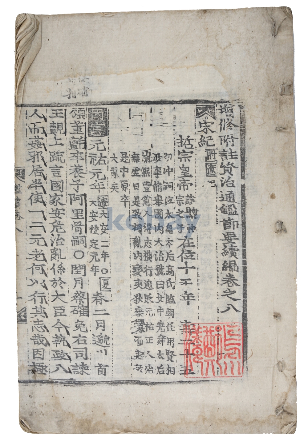 [增修附註資治通鑑節要續編] 卷8~9 1冊 右側 下段에 “烏川鄭瀁”이라고 새겨진 藏書印이 捺印되어 있다.