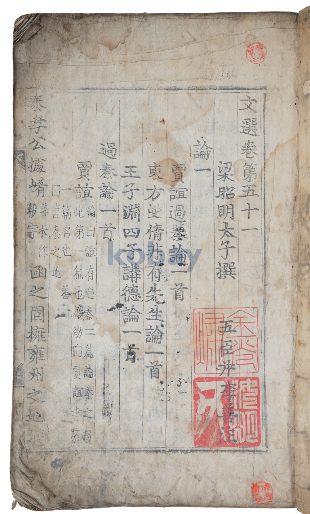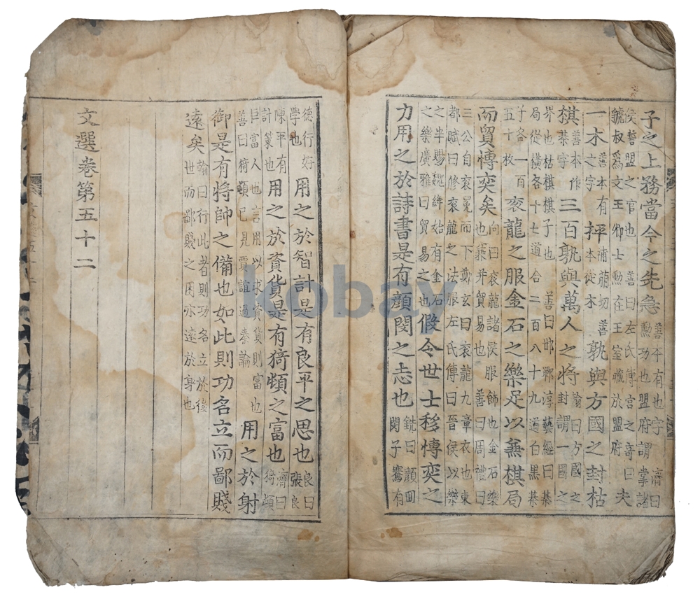 訓鍊都監本 [文選] 卷51~52 1冊의 경우, 卷頭 右側 下段에 “金光熽”․“汝明甫”라고 새겨진 藏書印이 順序대로 捺印되어 있다.