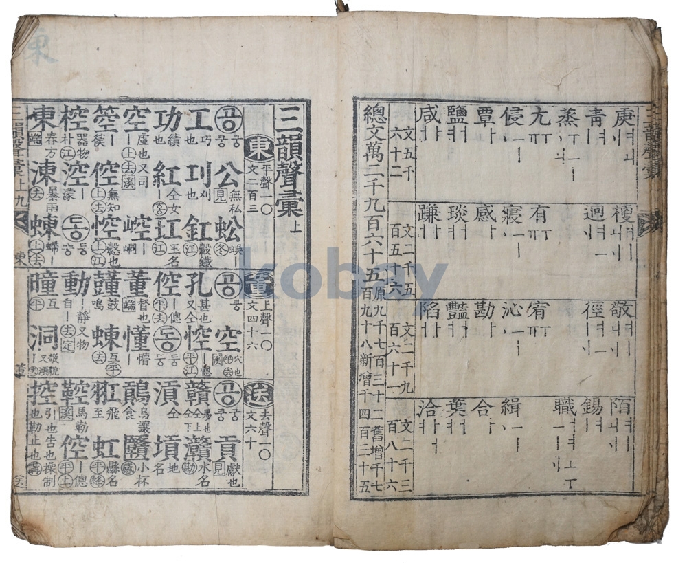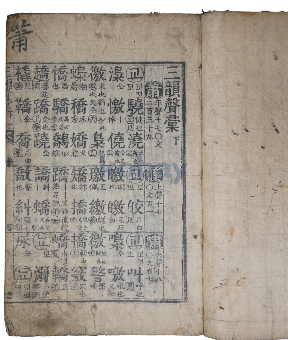 [三韻聲彙]의 完本은, 상·하 전2권 ․ 부(附) 옥편(玉篇) 전1권 등 전3책으로 구성되어 있다.