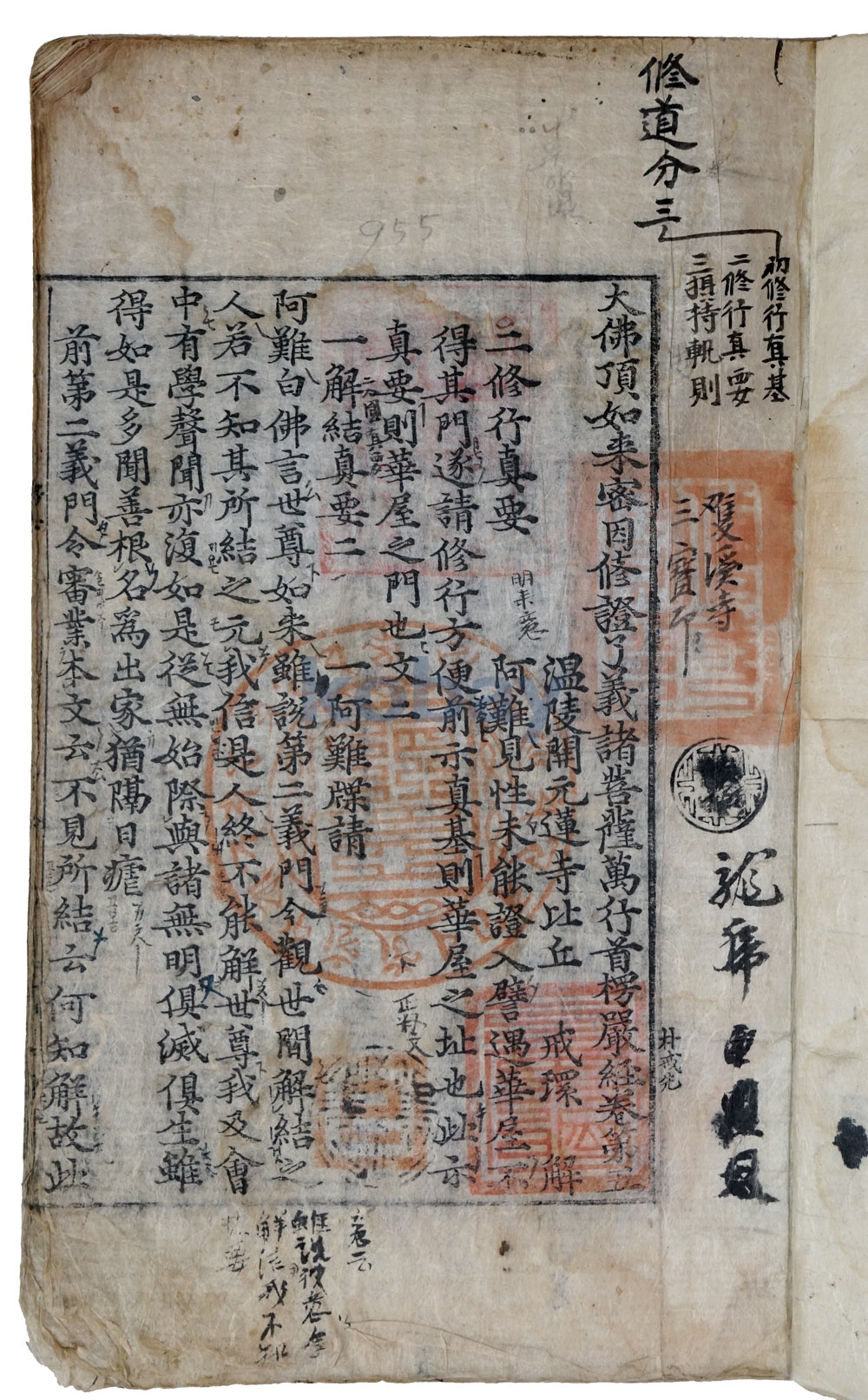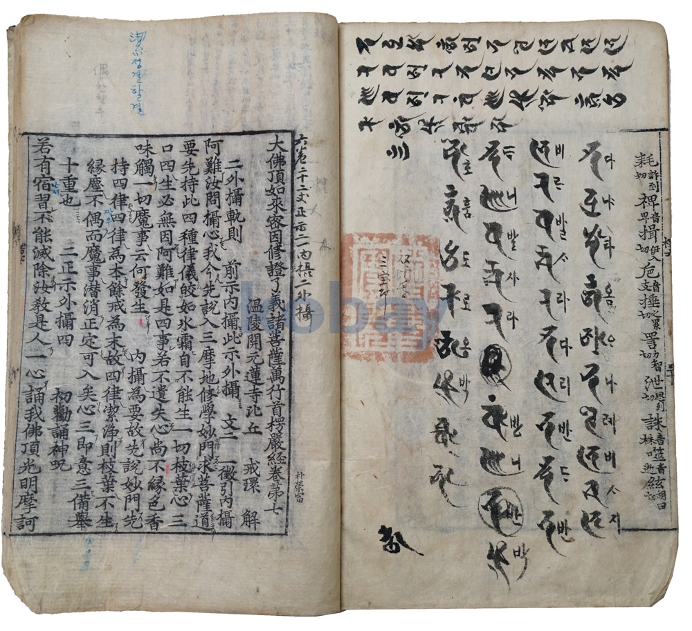 [大佛頂如來密因修證了義諸菩薩萬行首楞嚴經] 正文에는 口訣懸吐가 墨書되어 있으며, 欄外에는 스님의 私記가 仔細하게 筆寫되어 있다.