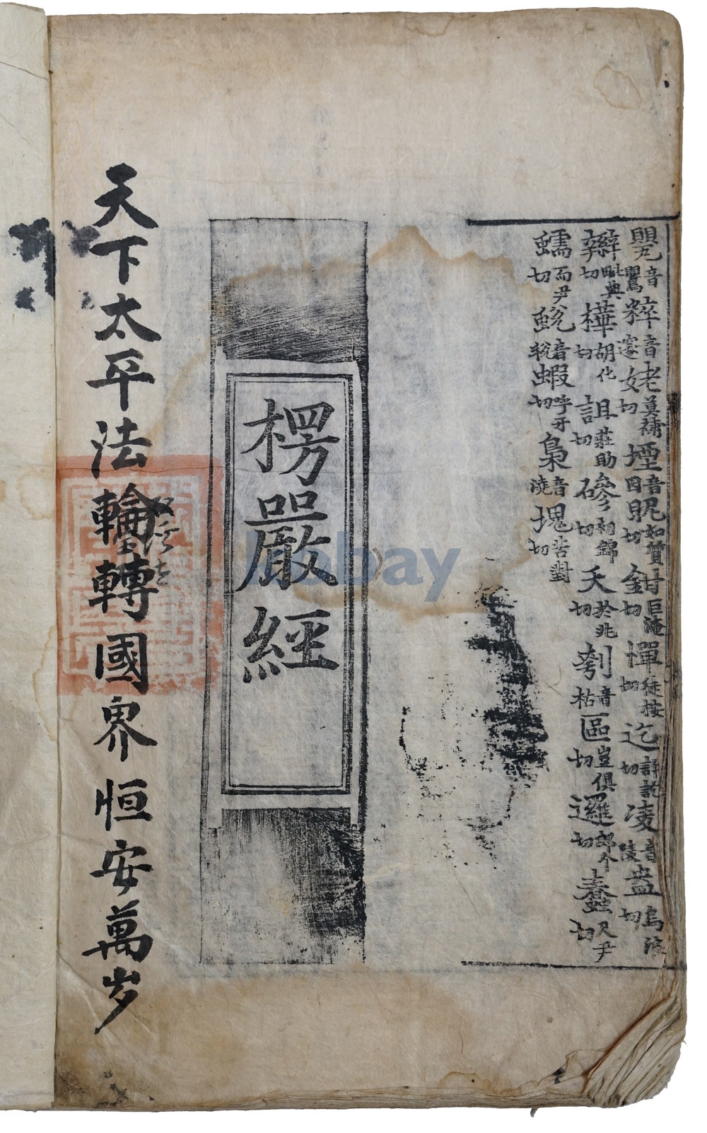 [大佛頂如來密因修證了義諸菩薩萬行首楞嚴經] 卷5~7 1冊의 各 卷首題面에는, “僧三寶印”․“僧寶”라고 새겨진 寺刹印이 捺印되어 있다. 梵語가 새겨진 寺刹印도 있다.
