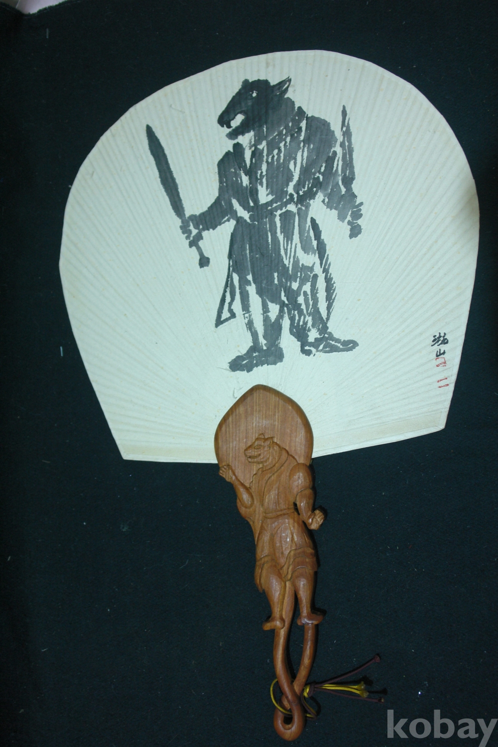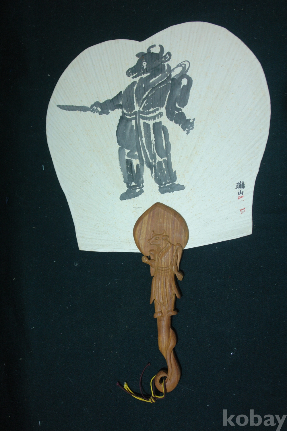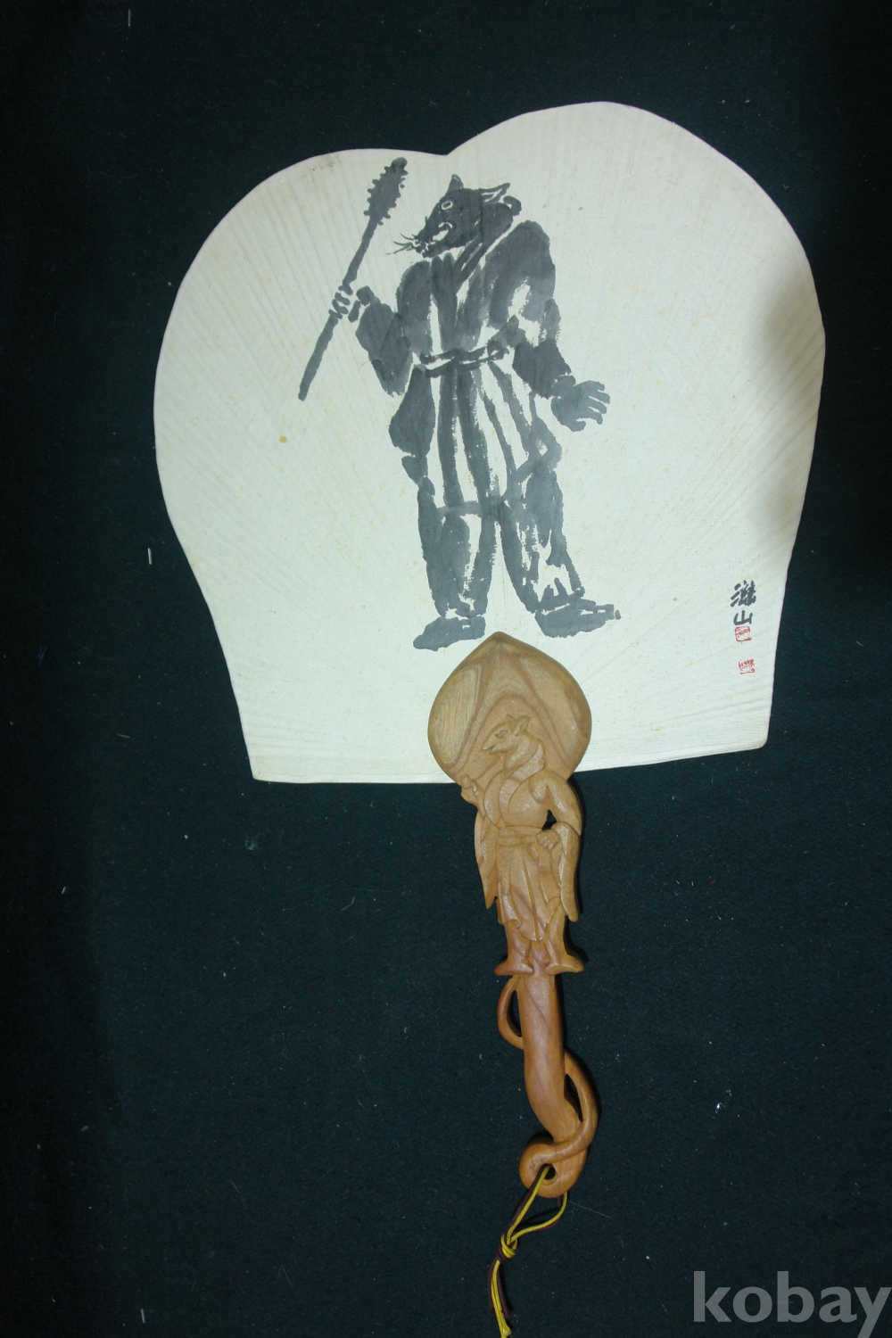 12지간 조각 느티나무 손잡이 자산 그림 부채 12지간 12개