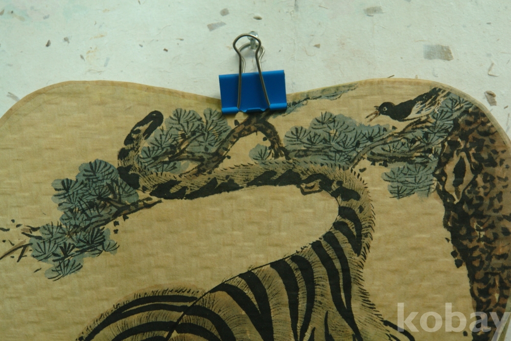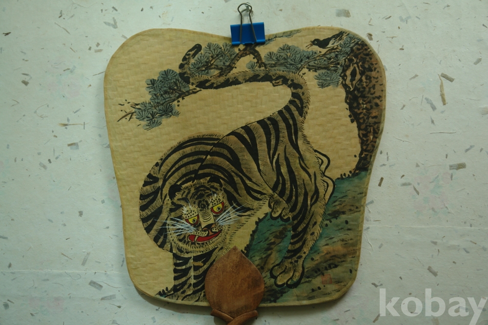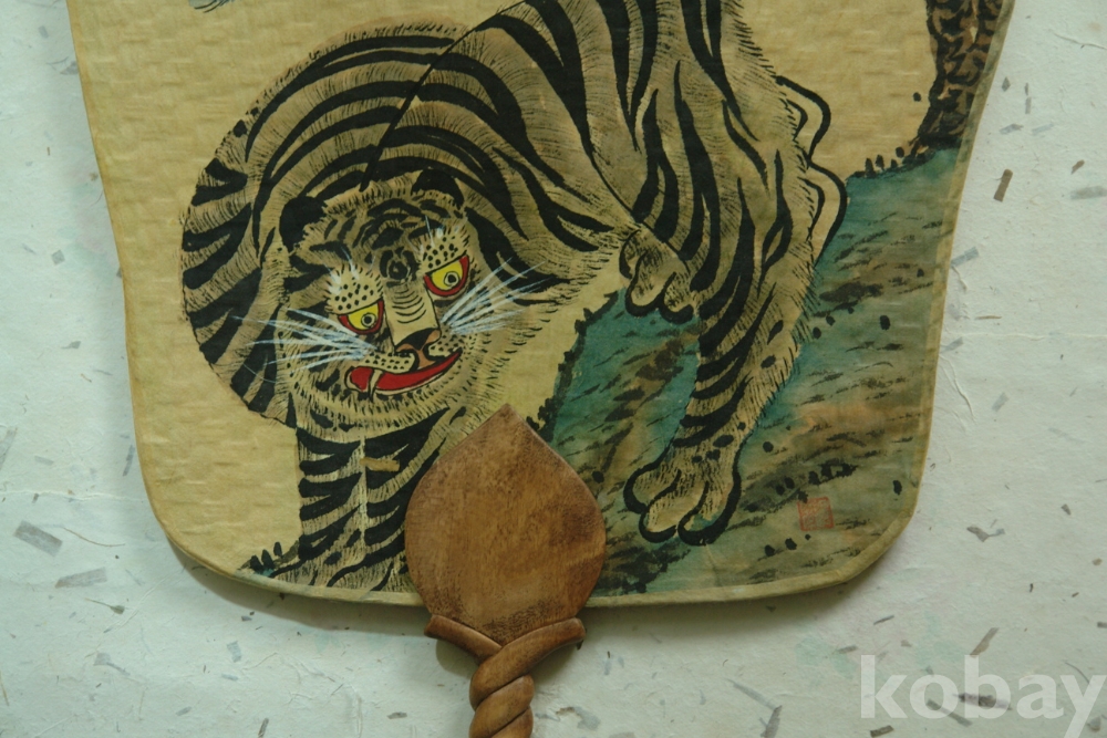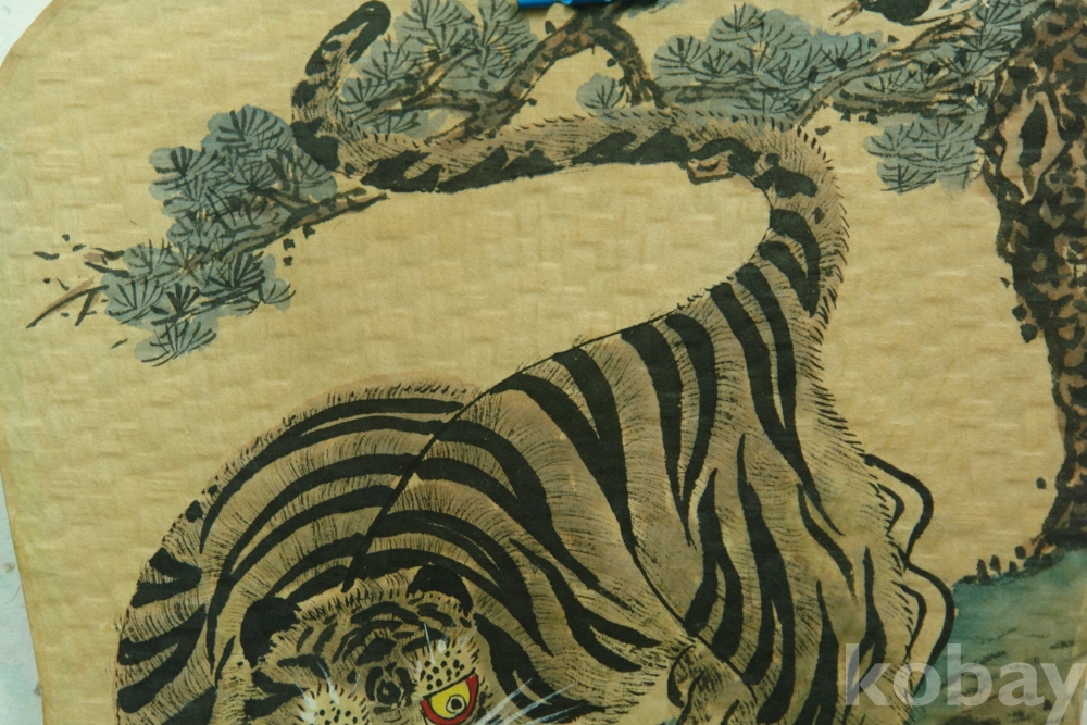 ?민화 호작도 손조각 파초죽석 부채