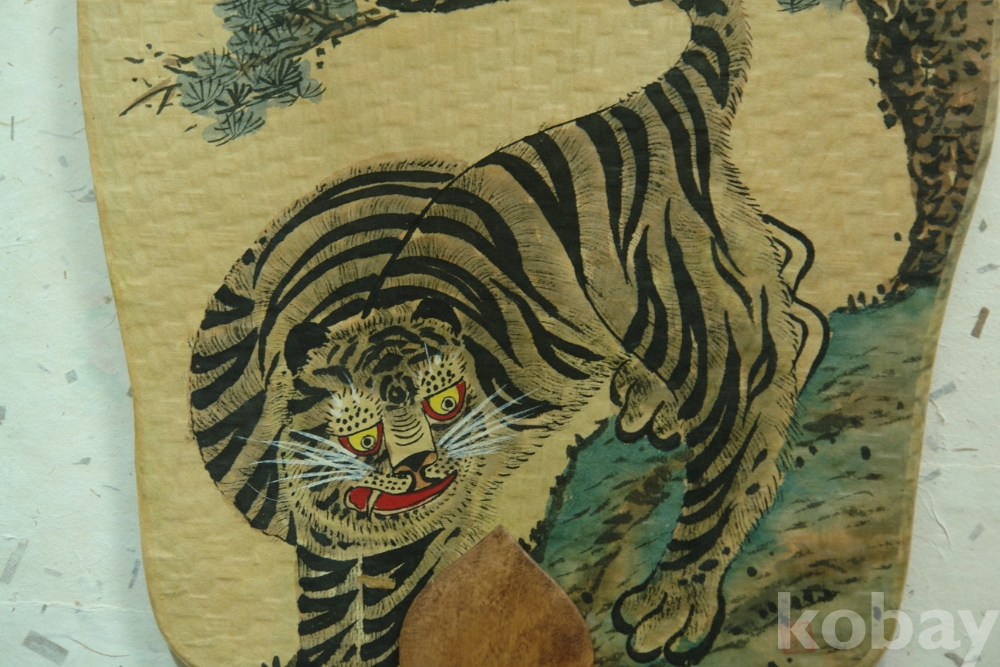 호랑이는 신을 대신하는 동물로 까치는 기뿐소식을 전해주는 사물로 민화중 가장많은 알려진 민화그림이다 정월을 뜻하는 소나무와 함게그린 그림으로 새해 기뿐 소식이 들어오라는 뜻도 포함한다
