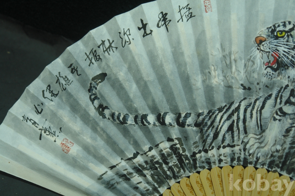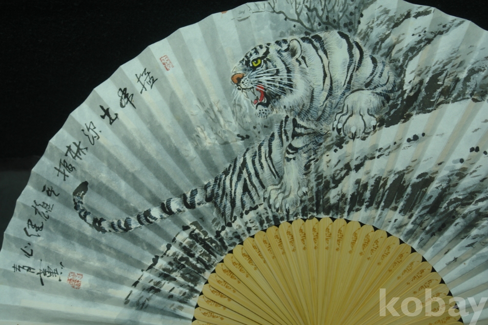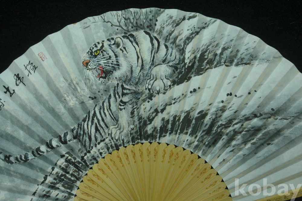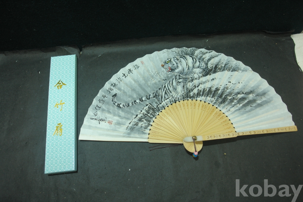 미사용 맹호도 백호도 청훈 호랑이그림 부채 합죽선
