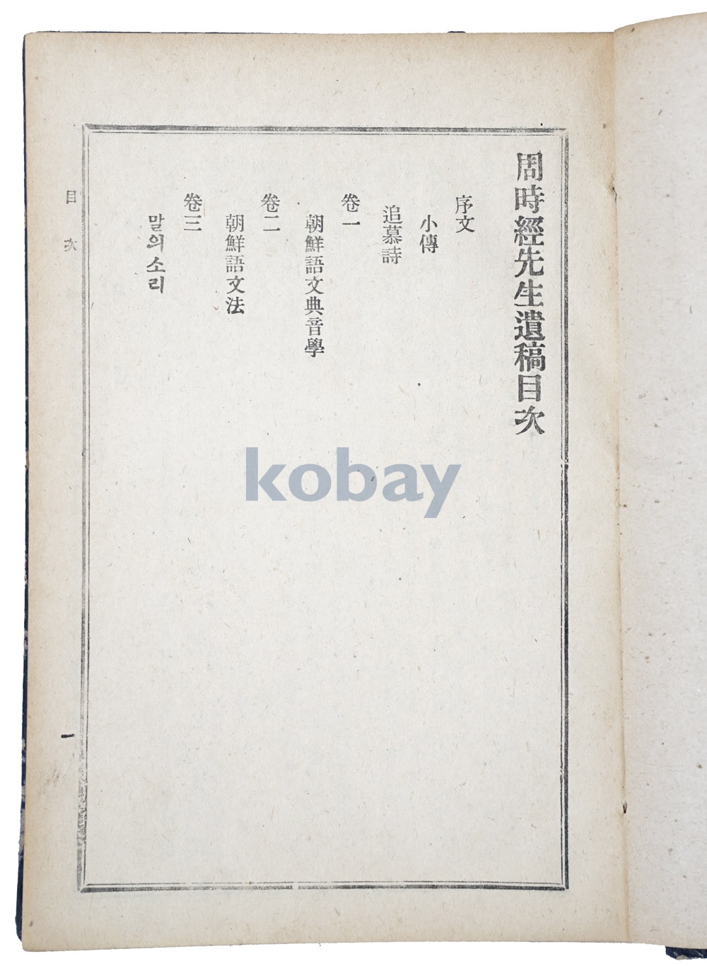 (2) 국어학자 周時經 著의 개화기에 저술 된 국어연구를 합집하여 간행한 [朝鮮語文法] 正音社 1946년