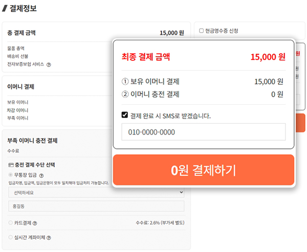 ② 보유 이머니로 전액 결제가 어려운 경우 ![]() 3