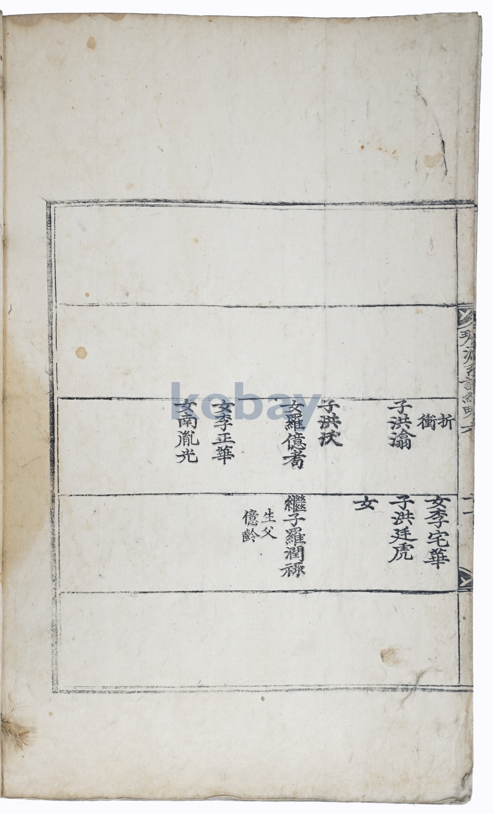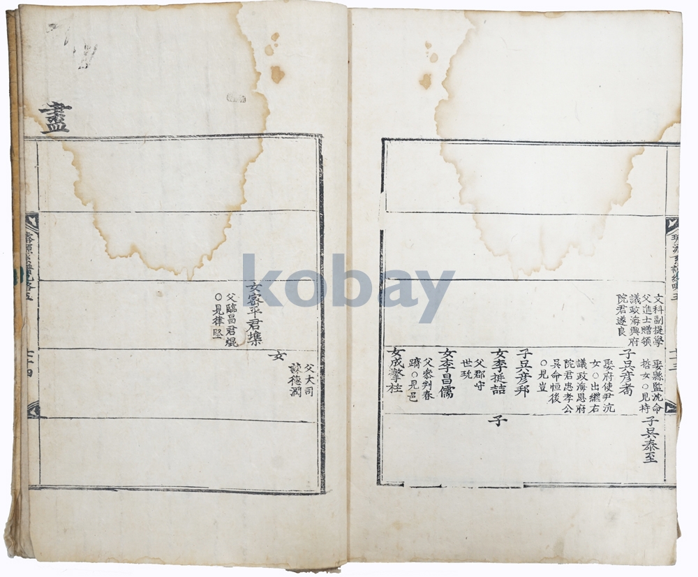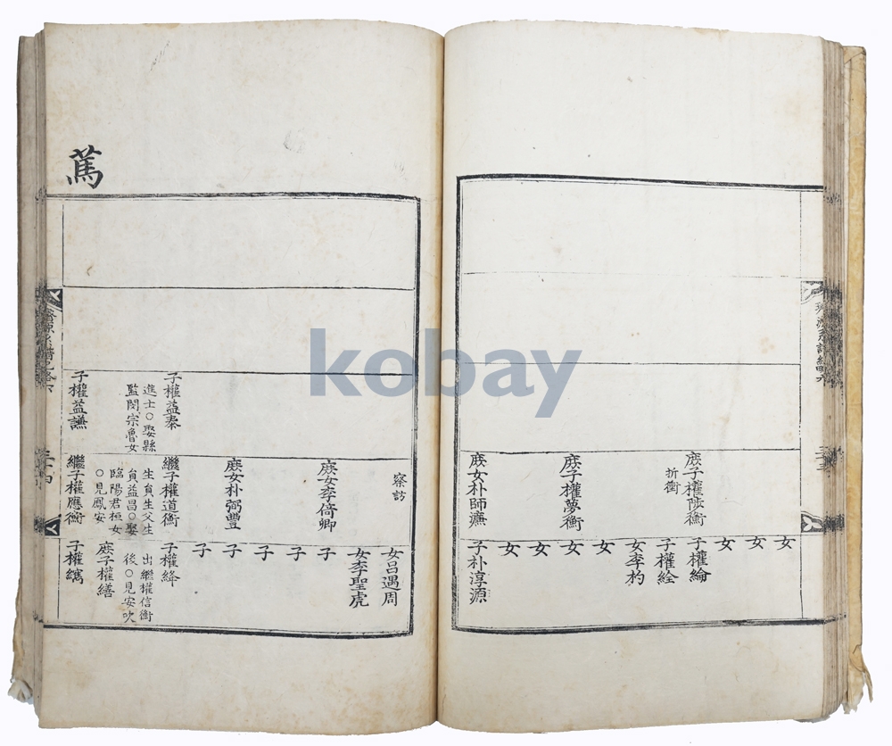 朝鮮時代 王室 族譜 木版本 [璿源系譜紀略] 卷5~6 2冊 零本의 各 冊 앞表紙 右側 上段 끝 部分에는, “賜”라고 墨書되어 있다.