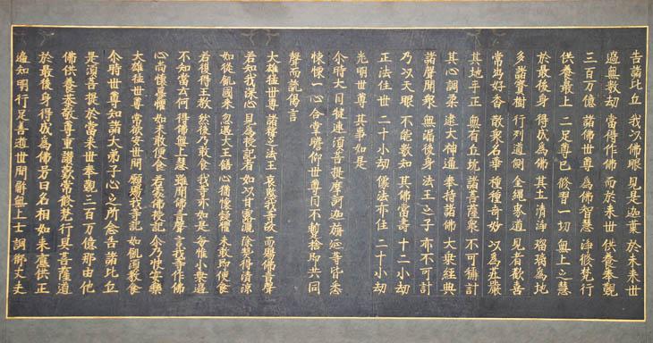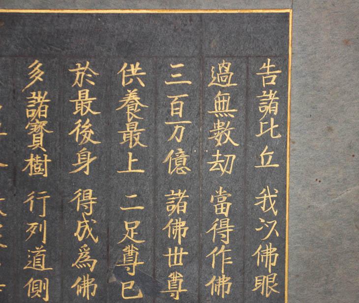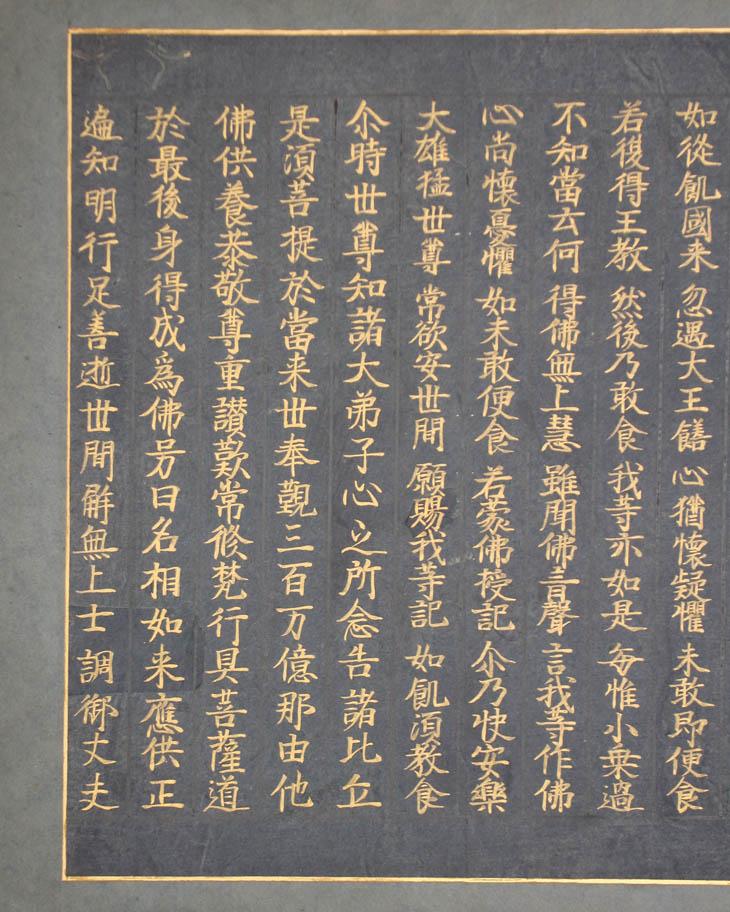 남색 종이 바탕에 금니로 적은 [묘법연화경] 일부 1점.