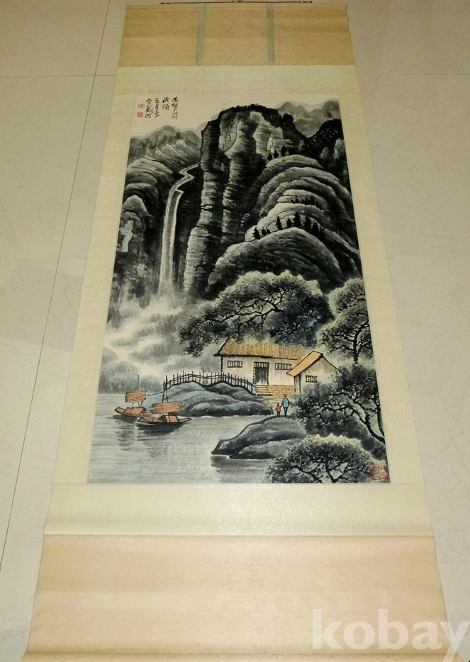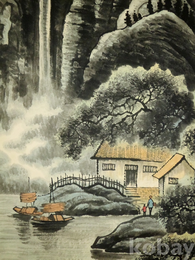 중국화대가 이가염(李可染) 1982년 대폭 사의산수화 관폭도(觀瀑圖)