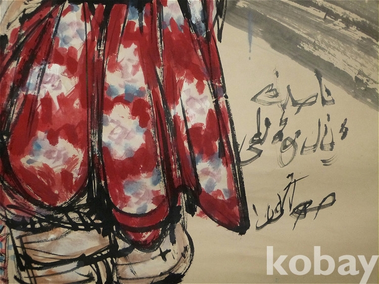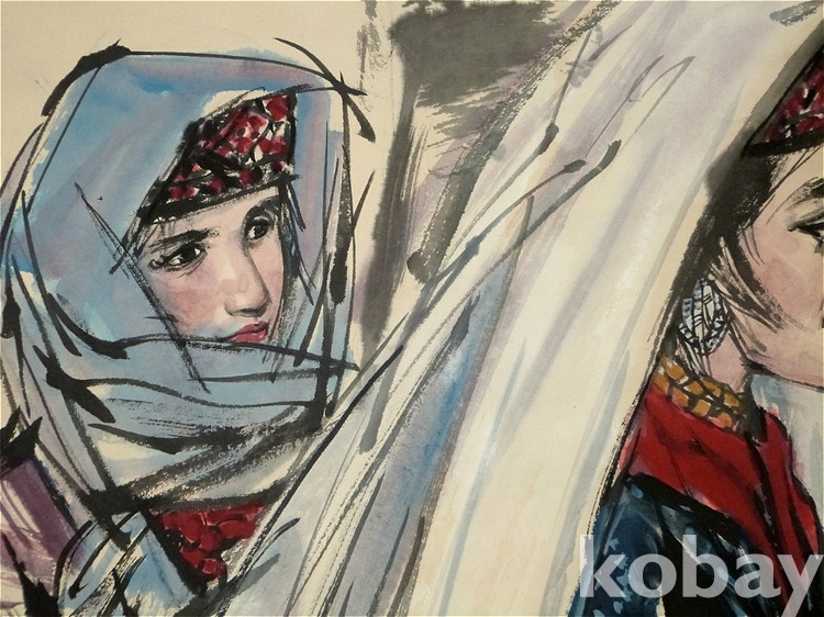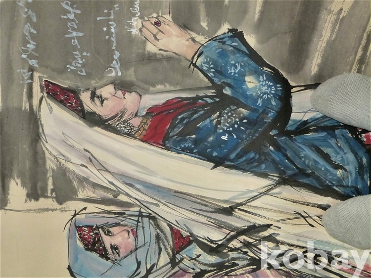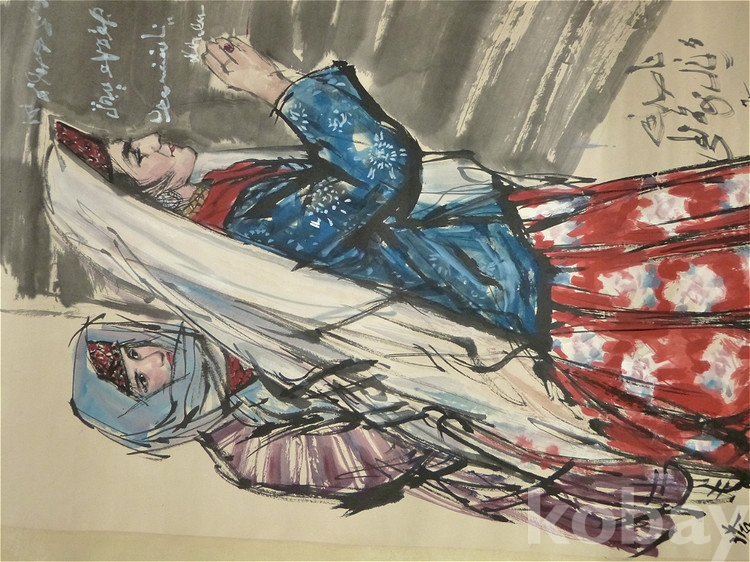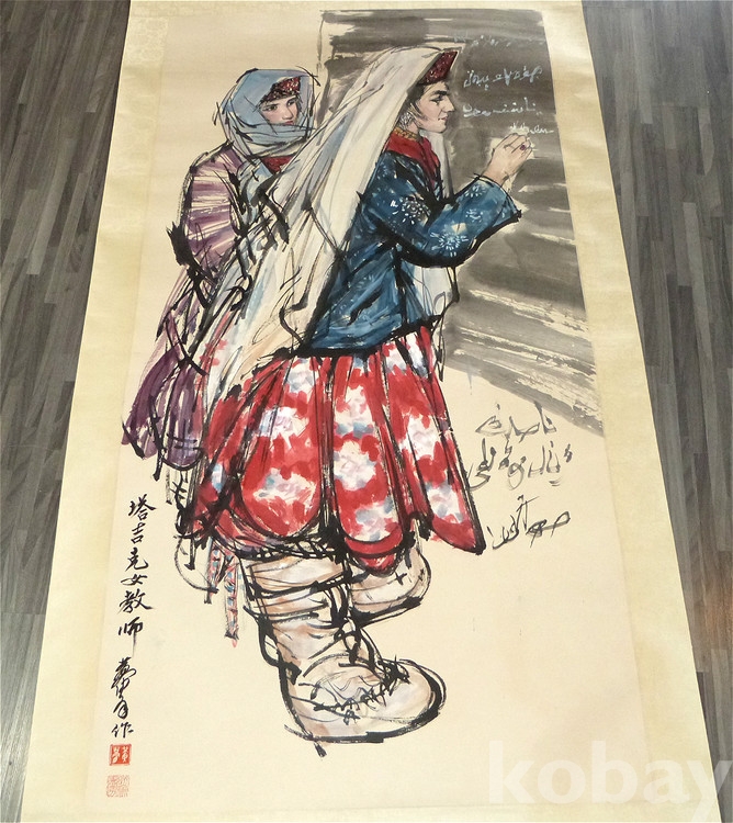 중국 인물화거장 황주(黄胄) 1980년대 대폭 크로키 인물 타지크학교