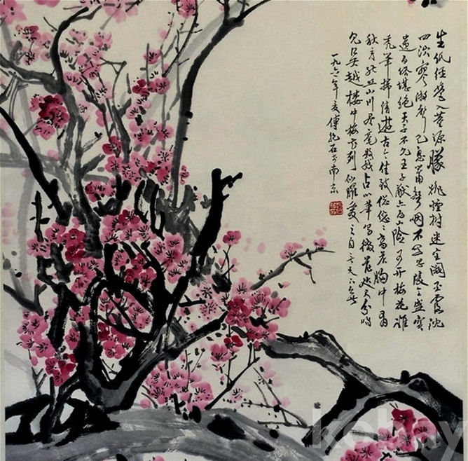중국 현대 중국화대가 부포석(傅抱石) 1961년 노년작 문인화 매화도
