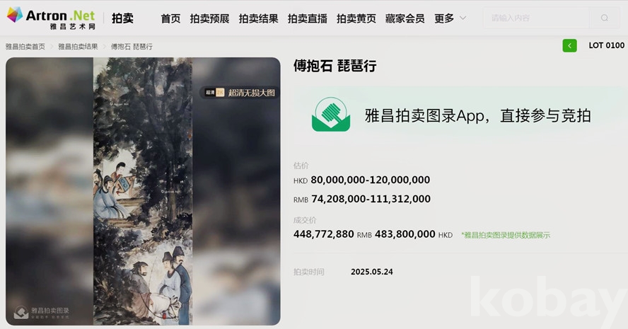 시작가 1억6천만위안, 최종낙찰가 2억3천만위안을 기록 미술계의 화제가 되더니
