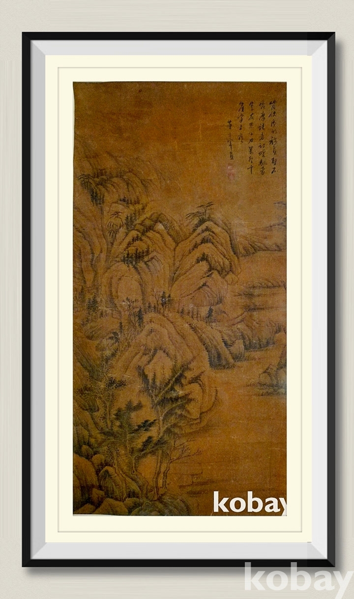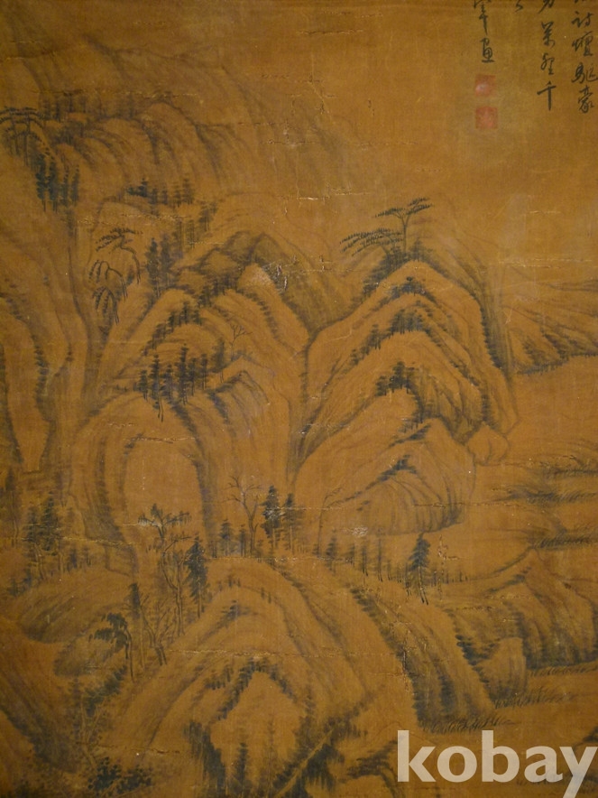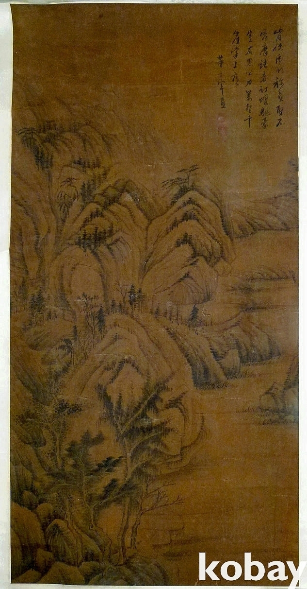 중국 명대후기 서화대가 동기창(董其昌,1555-1636) 견본(绢本) 수묵산수화