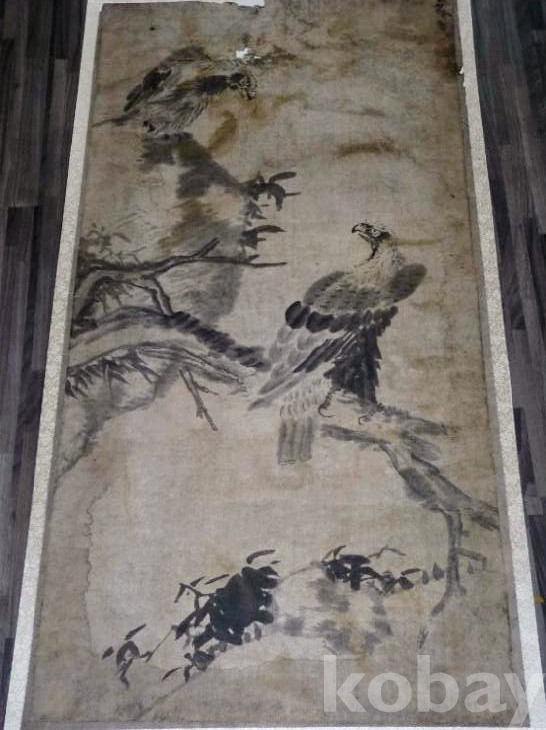 상단에 일부 훼손과 변색 오염 등이 있으나 대형작품으로 작품 주제부분은