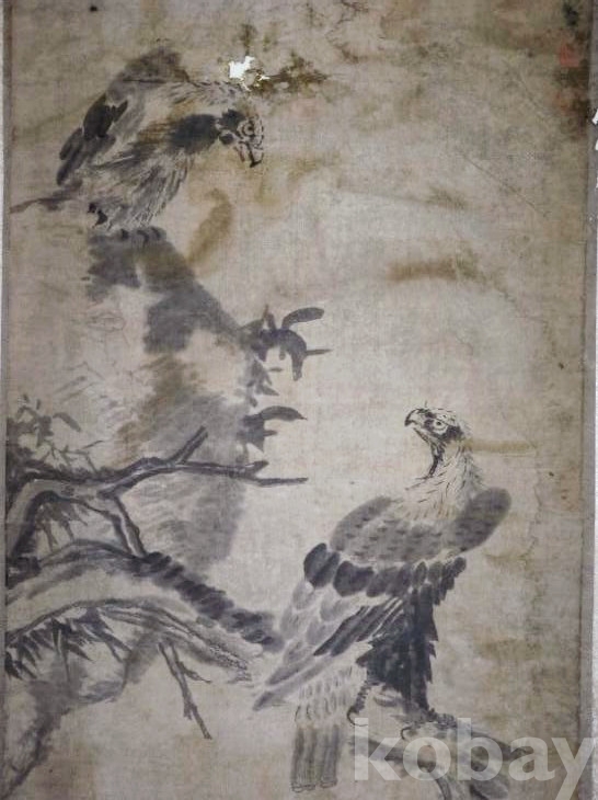 청대 사의중국화 '일대종사' 팔대산인 주탑(八大山人 朱耷) 대폭영모도 쌍응도(雙鷹圖), 속그림