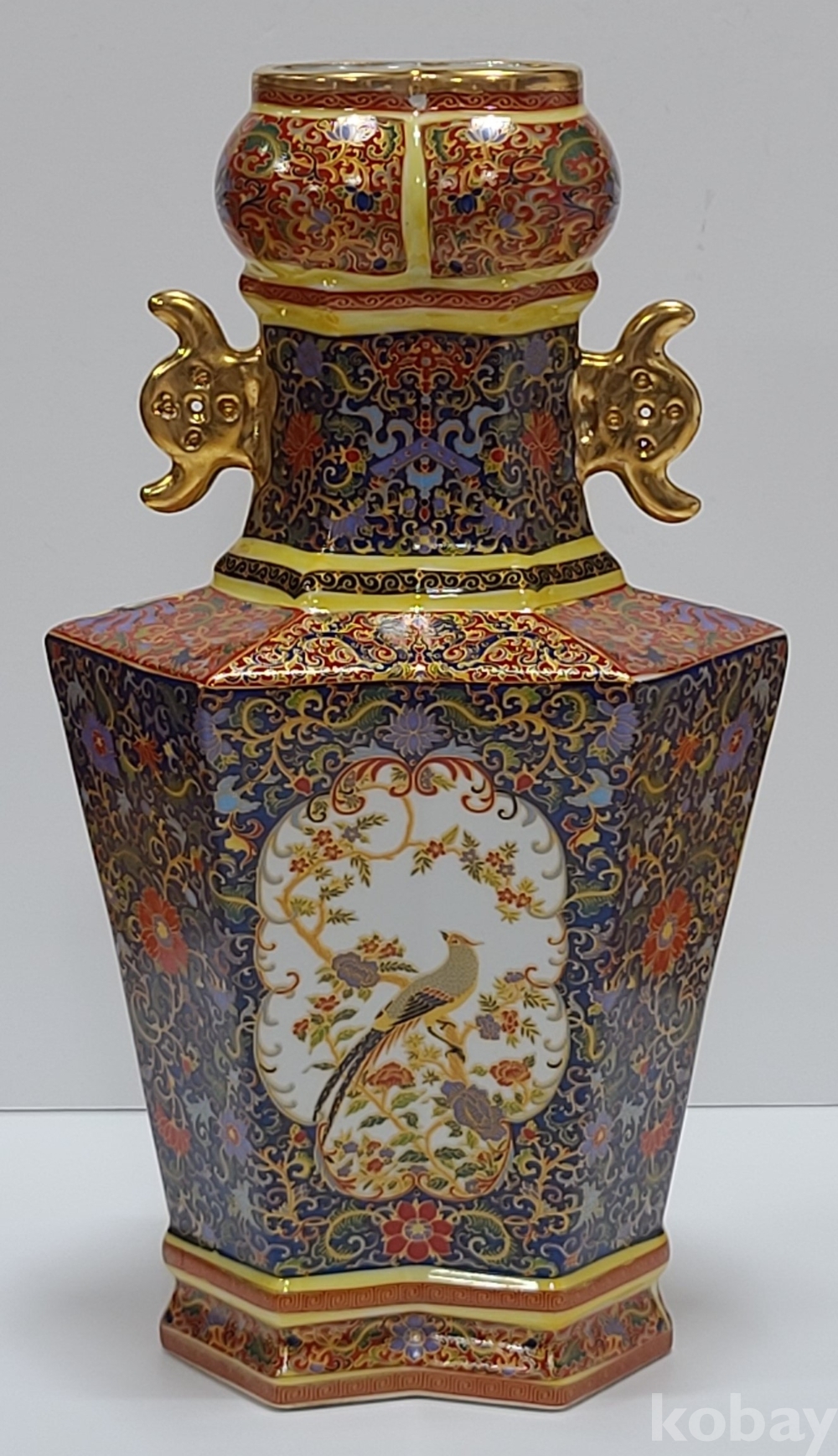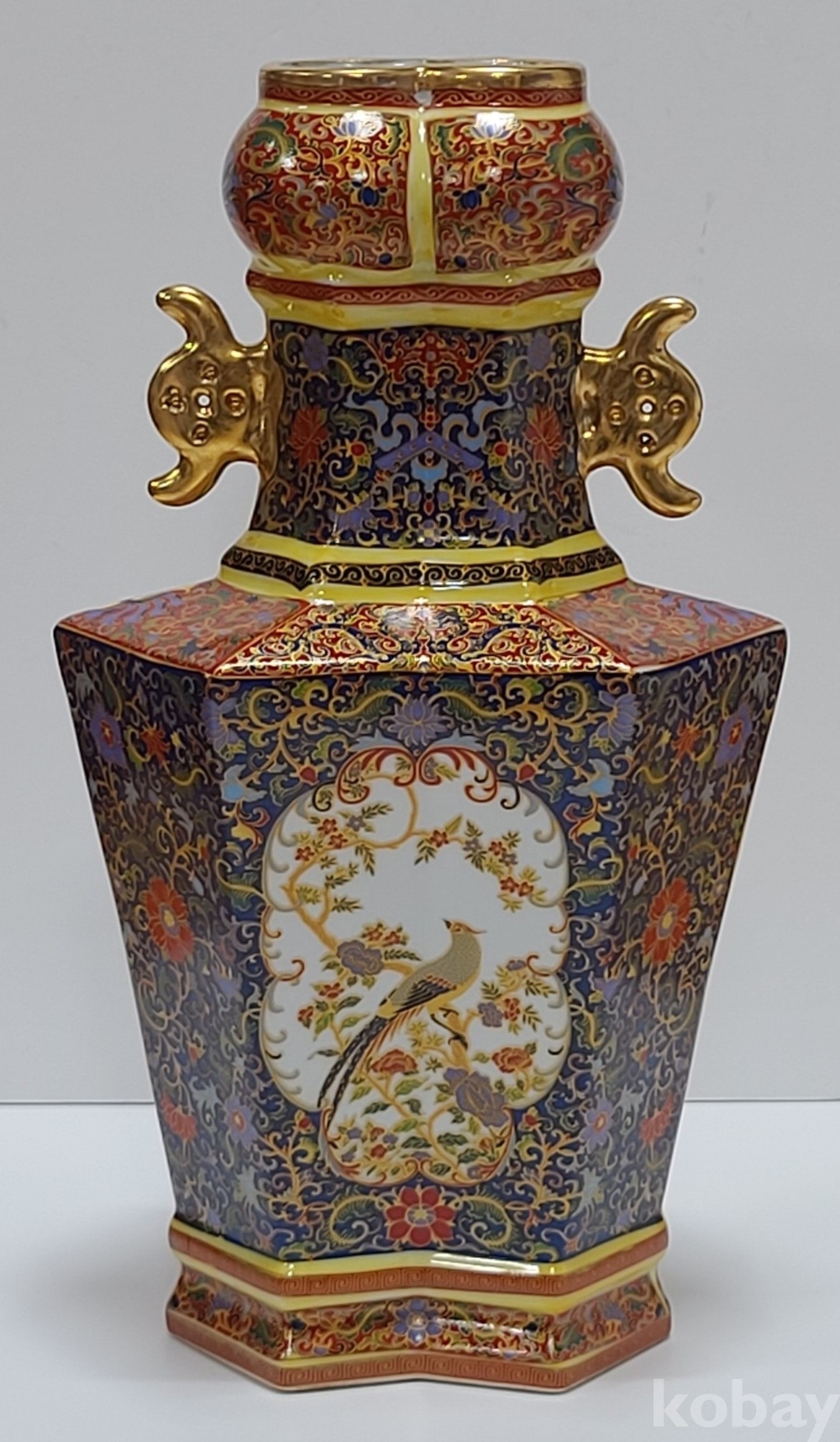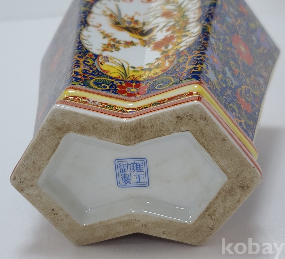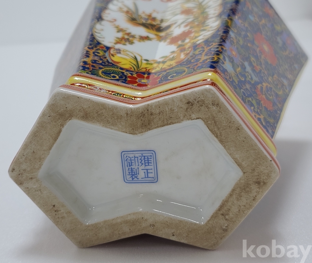 옹정어제 관지가 있는 황실용 팔각 법랑채 화조 쌍화병 입니다.