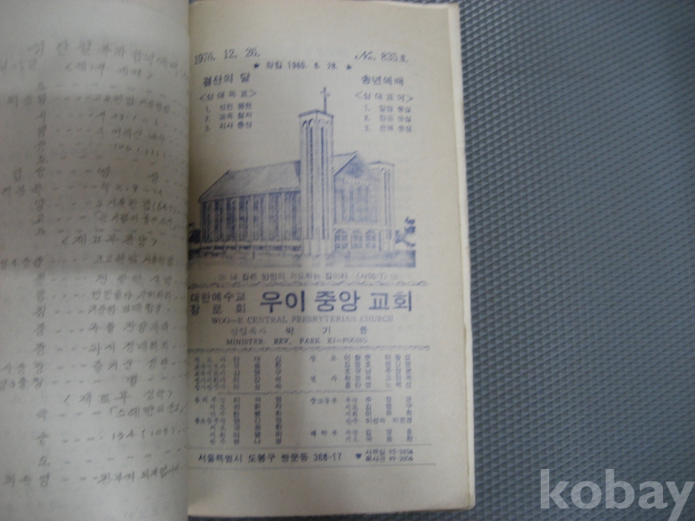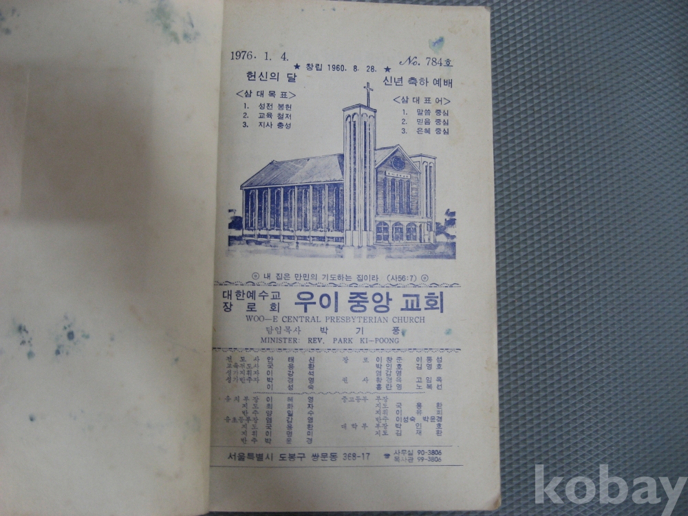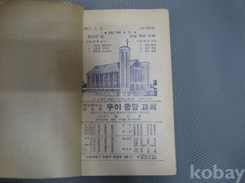 70년대 우이중앙교회 주보 두묶음,,,,76-77년,,