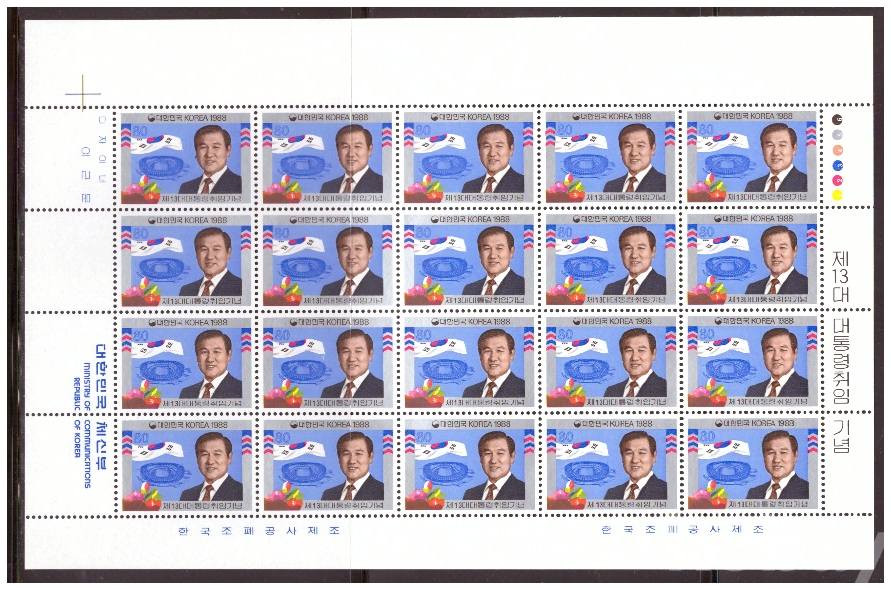 (한국전지) 1988 2.24 제13대 (노태우)대통령 취임 sheet of 20 MNH