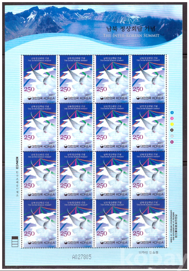 (한국지) 2007.10.2 남북정상회담 sheet of 16 MNH