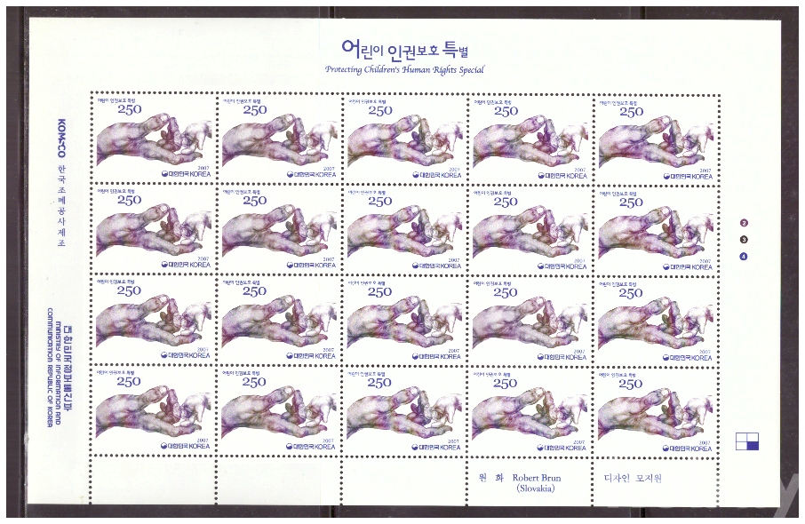 (한국전지) 2007.11.20 어린이 인권보호 2완 sheet of 20 MNH
