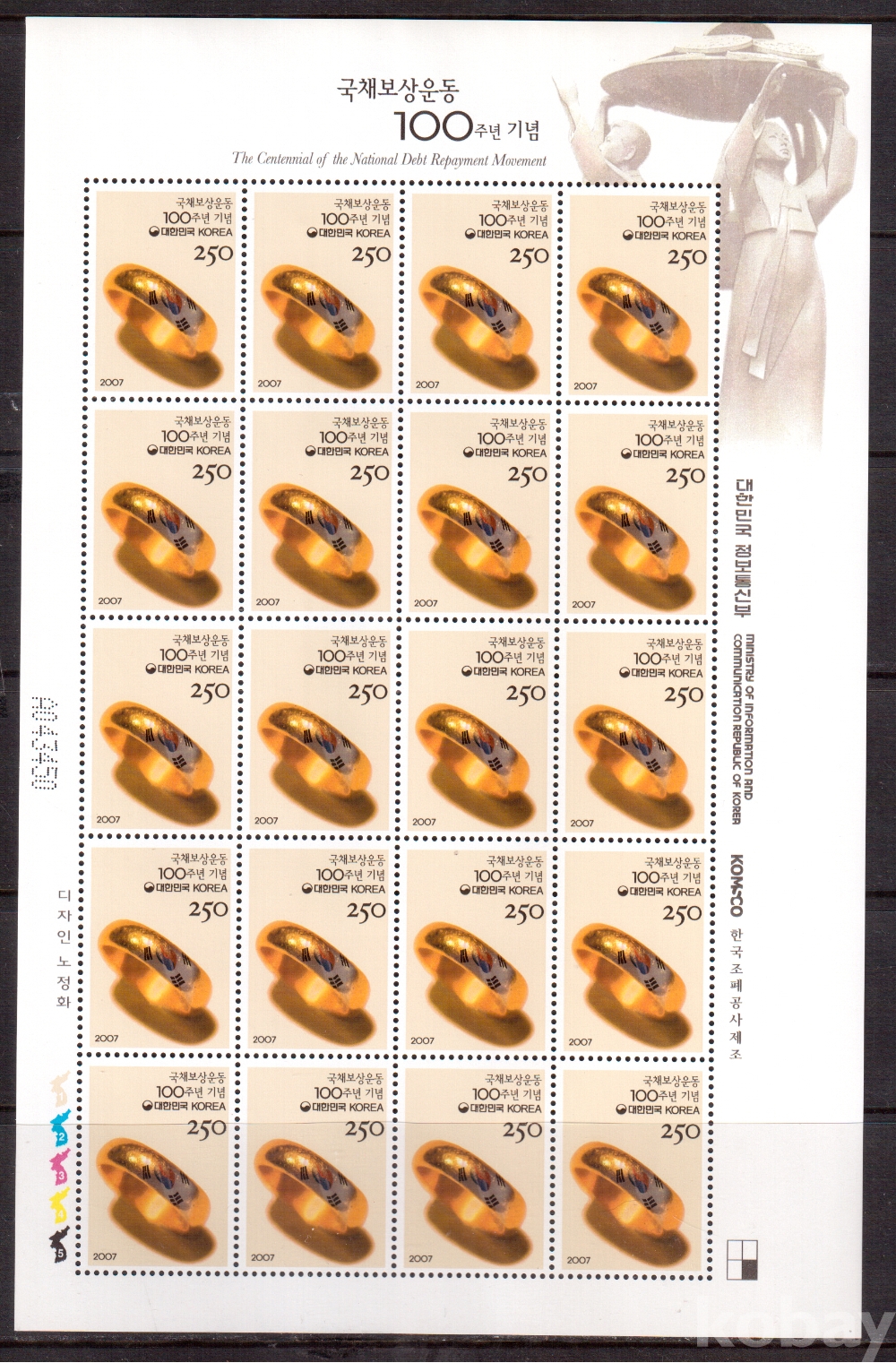 (한국전지) 2007.2.21 국제보상운동 100주년 sheet of 20 MNH