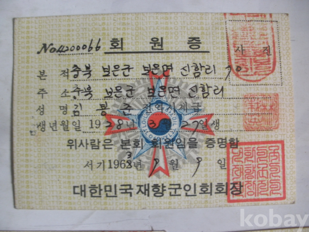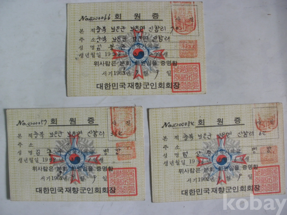 재향군인회 회원증 - 3매일괄 (1963년, 보은군 보은면)