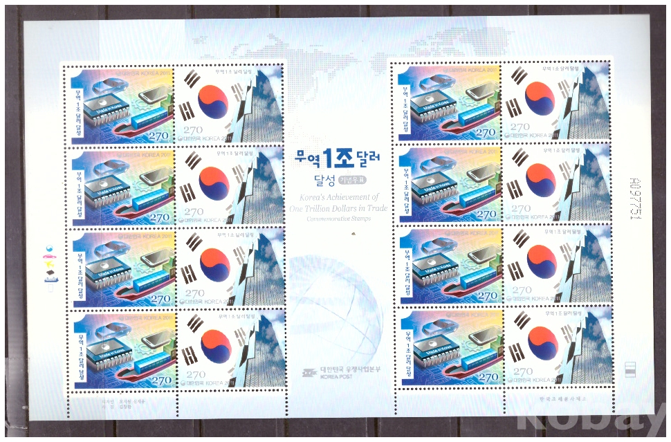 (한국전지) 2011.12.7 무역 1조 달러 달성 sheet of 16 MNH