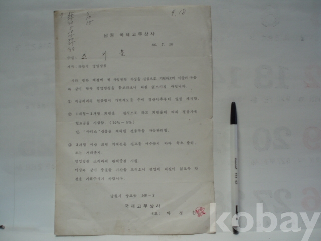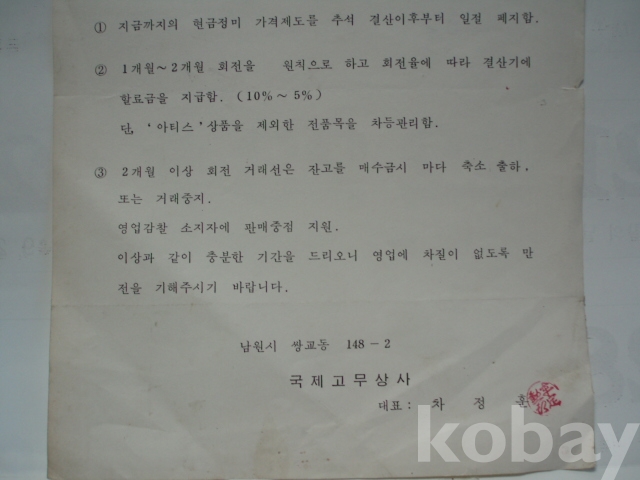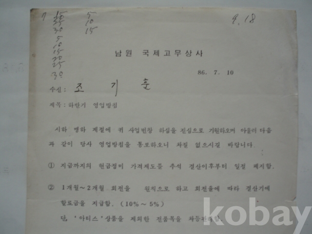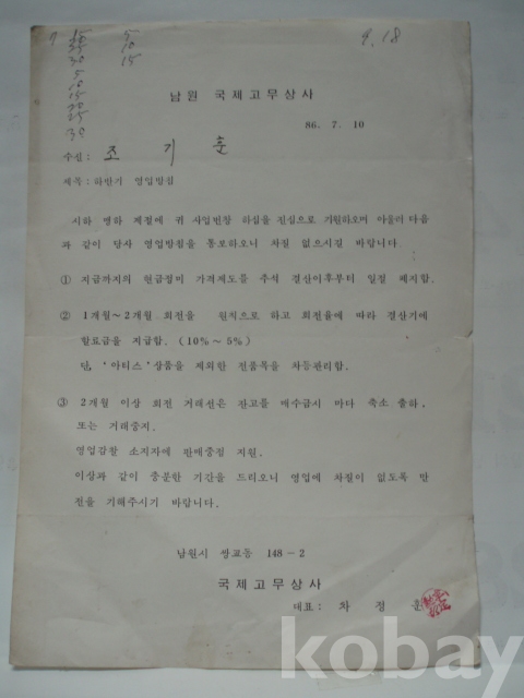 남원 국제고무상사 - 영업방침 통보 (1986년)