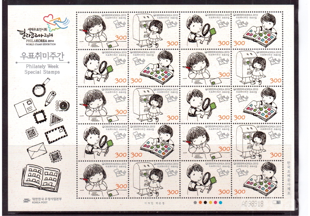 (한국전지) 2013.8.8 우표취미주간 sheet of 20 MNH