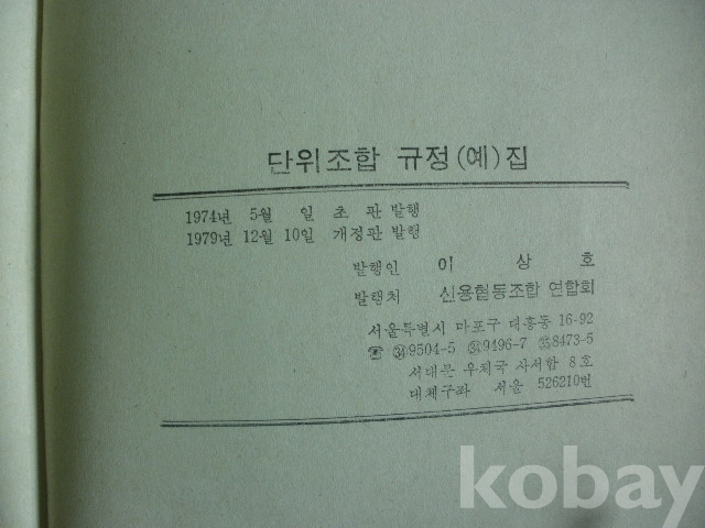 (대회비) 단위조합 규정(예)집 (1979년, 신용헙동조합연합회)