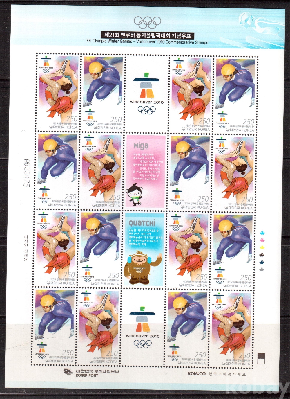 (한국전지) 2010.2.12 제21회 밴쿠버 동계올림픽대회 sheet of 16 MNH