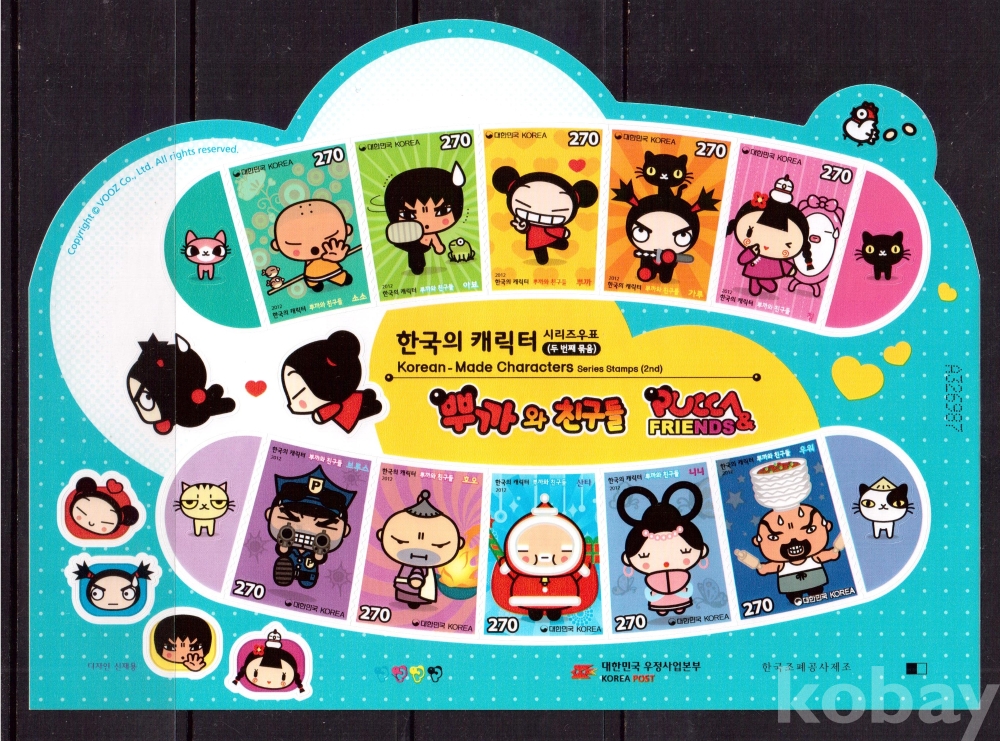 (한국전지) 2012.2.22 한국의 캐릭터 시리즈(두번째묶음)-뿌까와 친구들 sheet of 10 MNH
