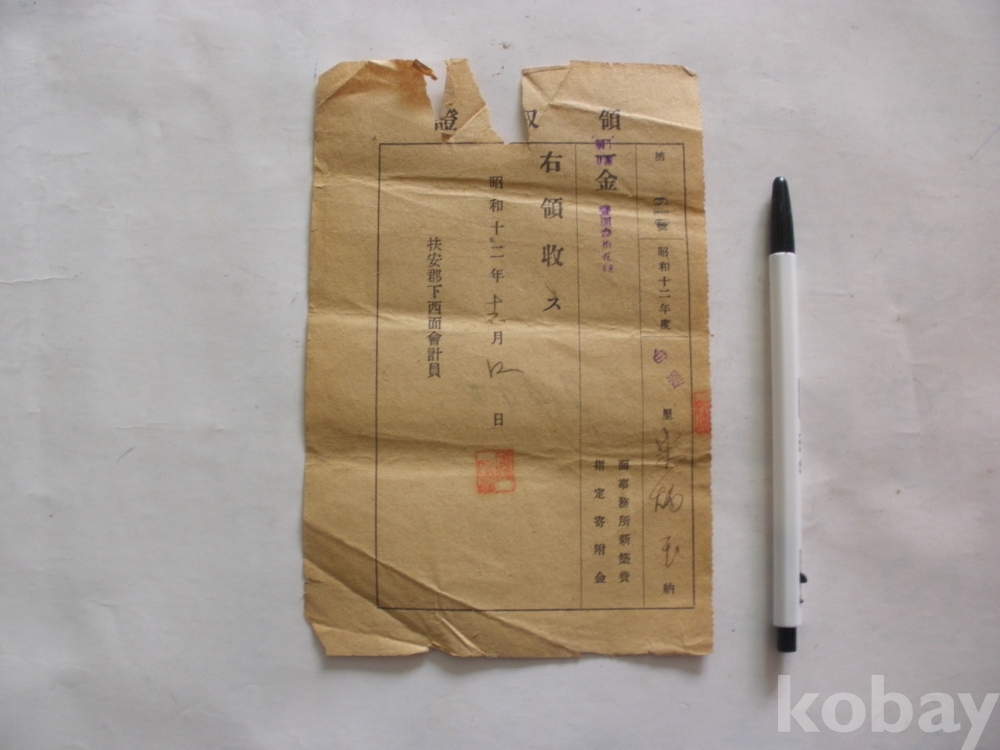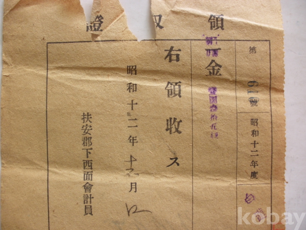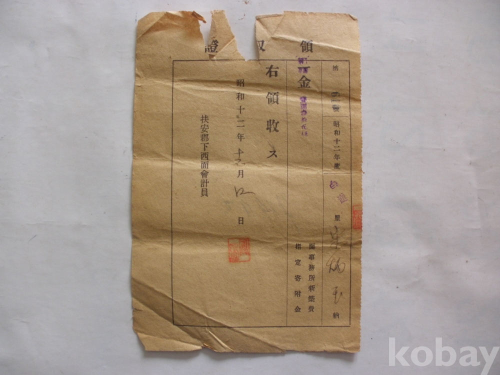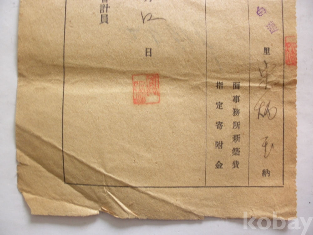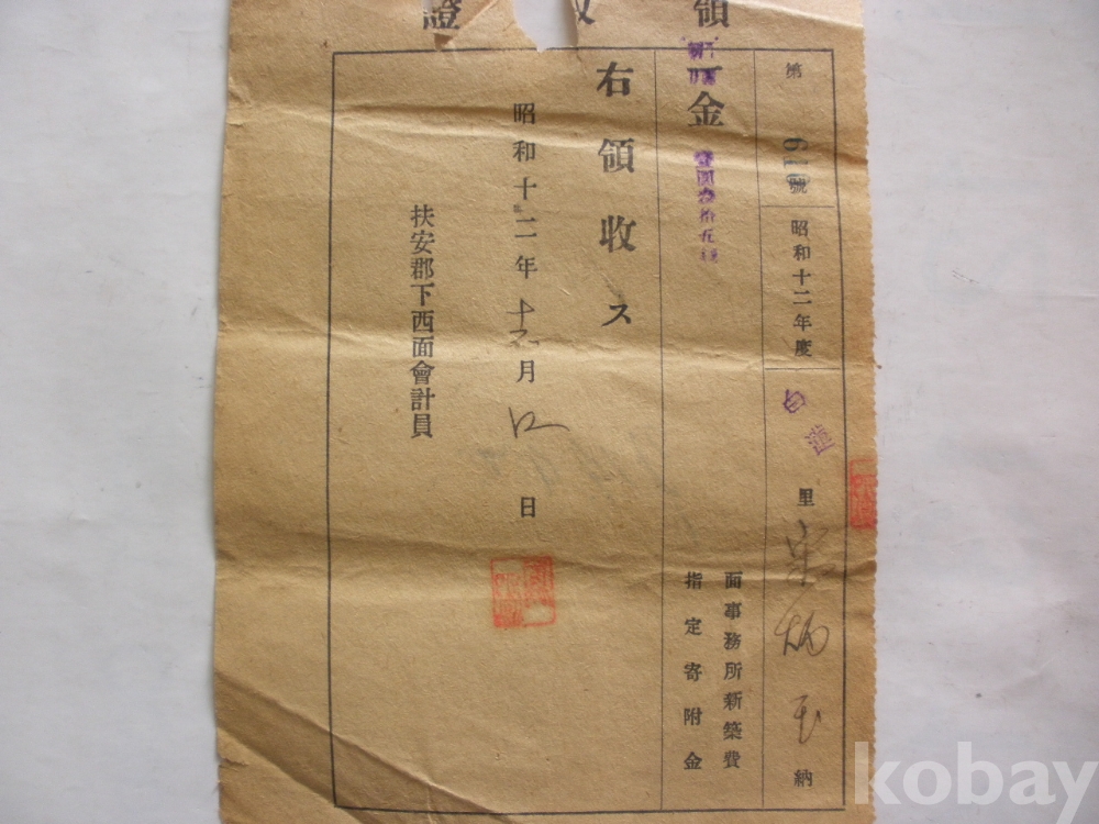 부안군 서하면사무소 - 신축비 지정기부금 영수증 (소화12년)