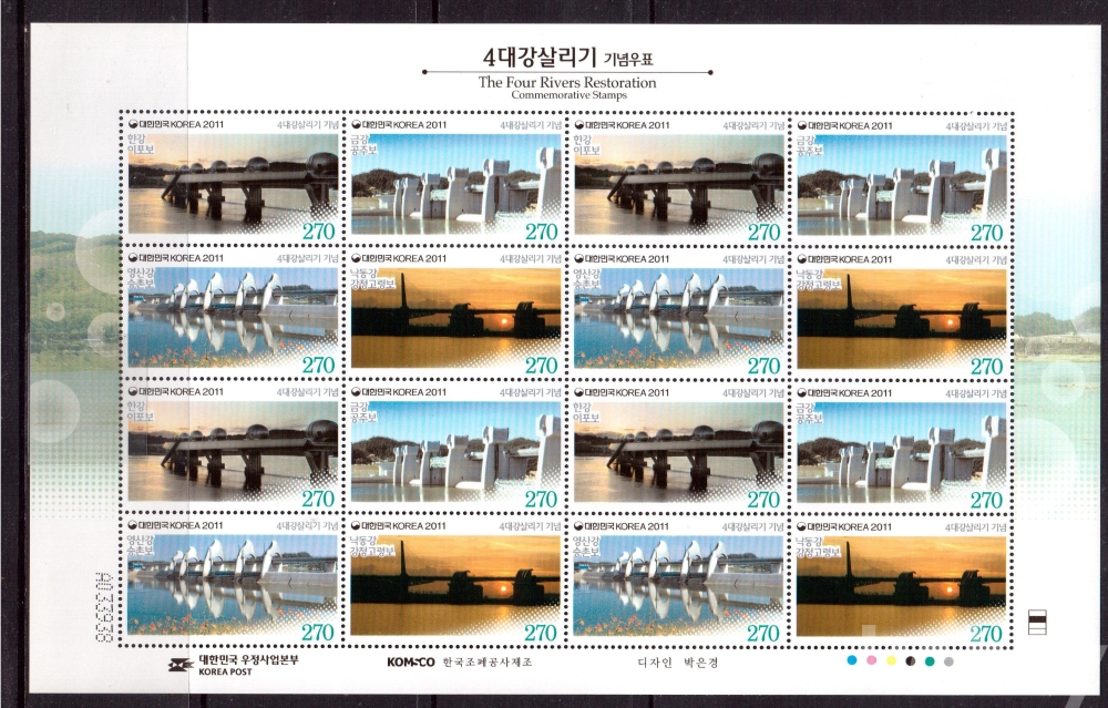 (한국전지) 2011.10.21 4대강살리기 sheet of 16 MNH