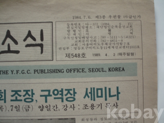 순복음소식 - 조장,구역장 세미나, 강사 조용기 목사 (1984년)