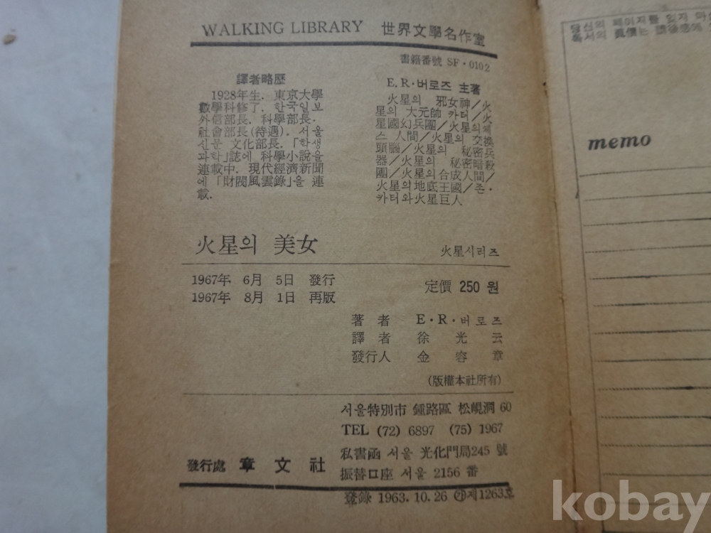 화성의 미녀 (1967년, 버로즈 저, 서광운 역)