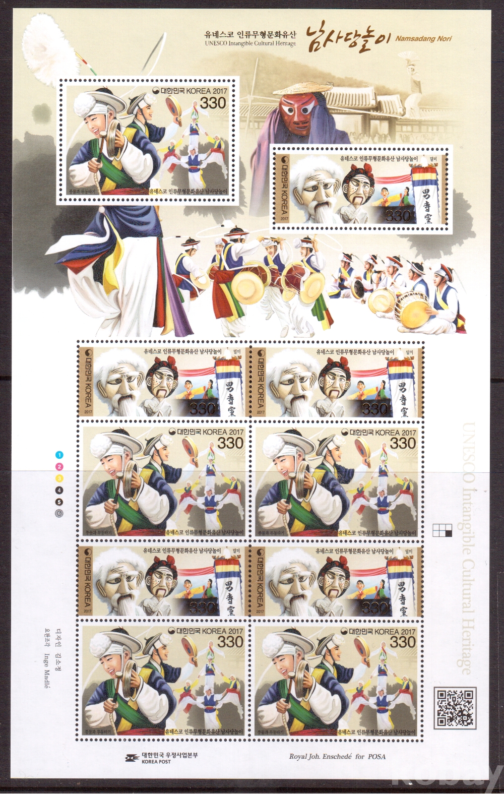 (한국전지) 2017.10.27 유네스코 인류무형문화유산(남사당놀이) sheet of 10 MNH
