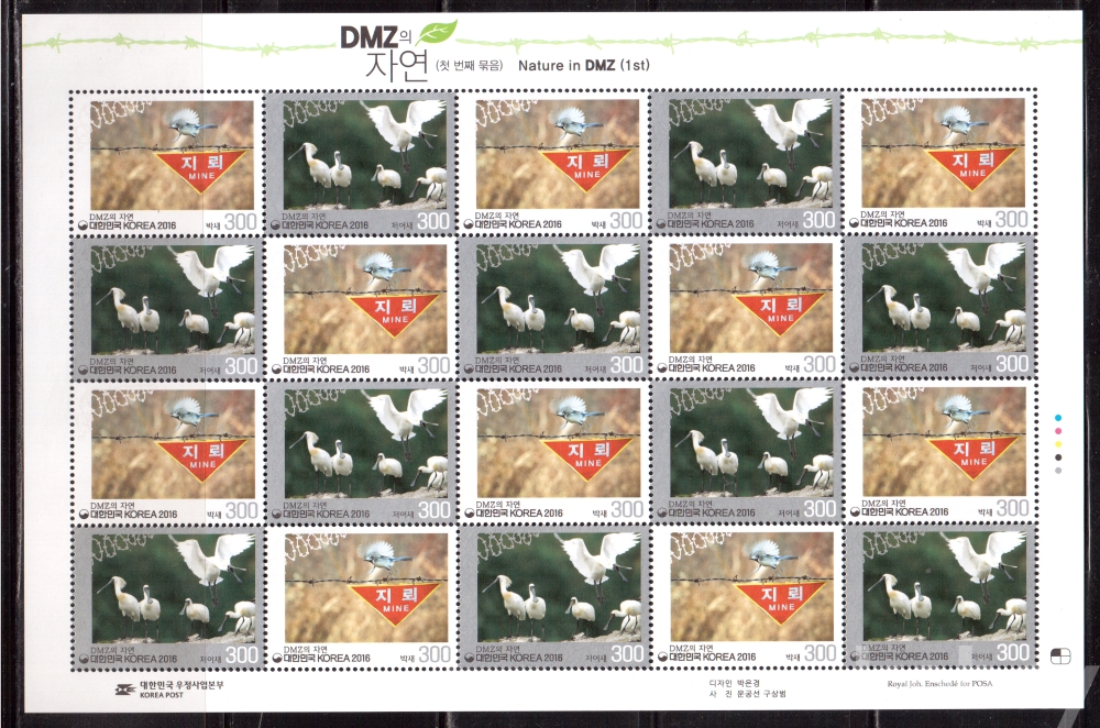 (한국전지) 2016.11.22 DMZ의 자연(첫번째묶음) sheet of 20 MNH