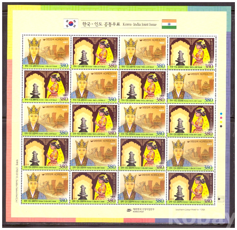 (한국전지) 2019.7.30 한국-인도 공동우표 sheet of 20 MNH