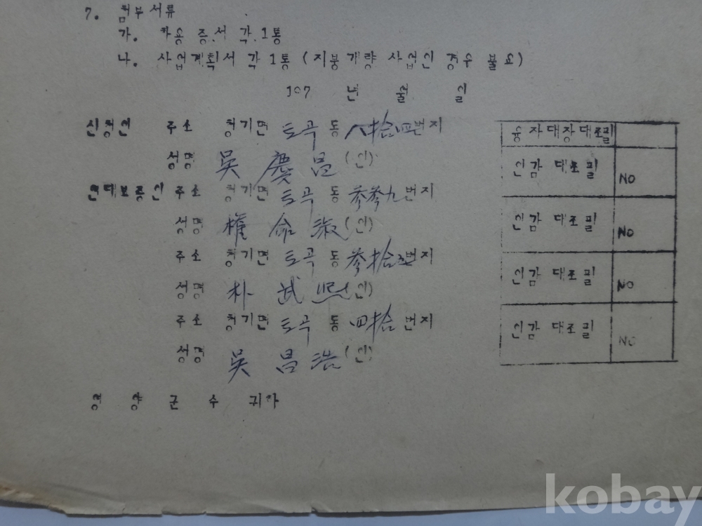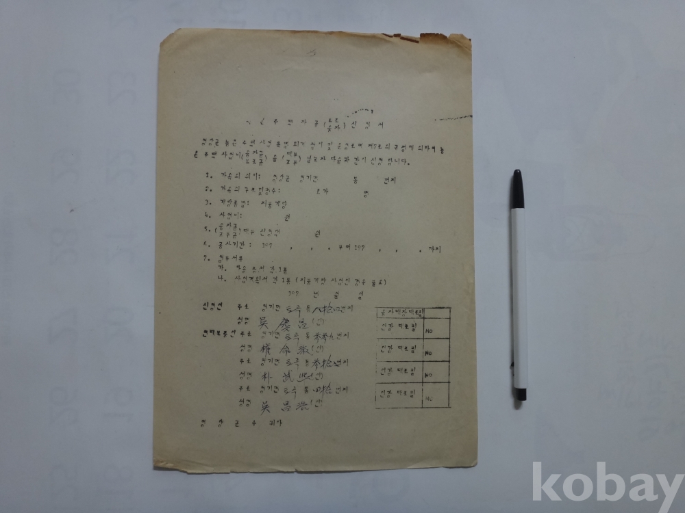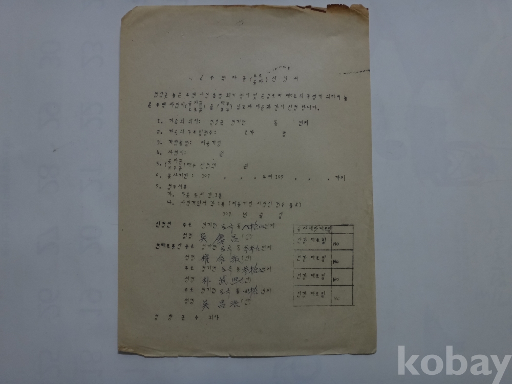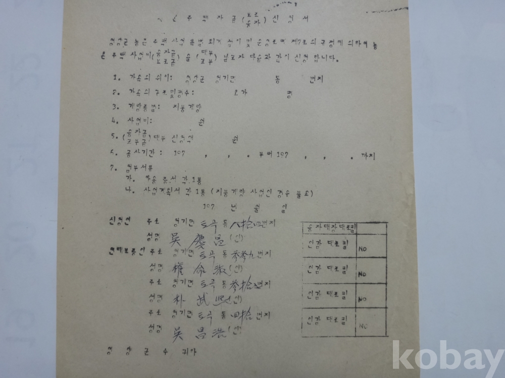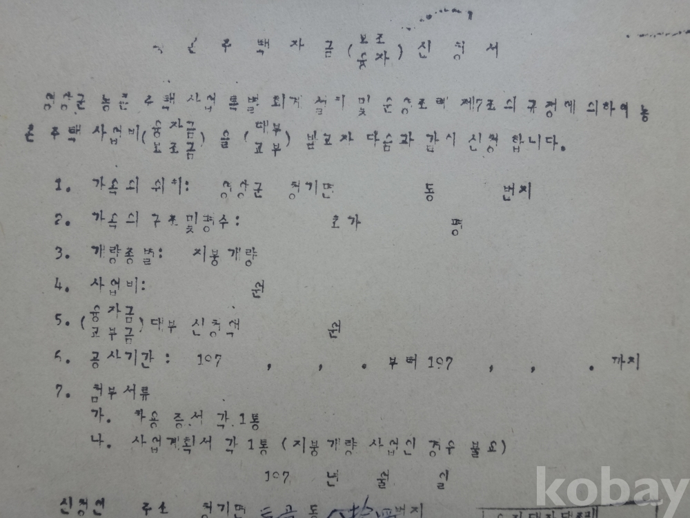 영양군 농촌 주택자금 - 보조 융자 신청서 (1970년대)