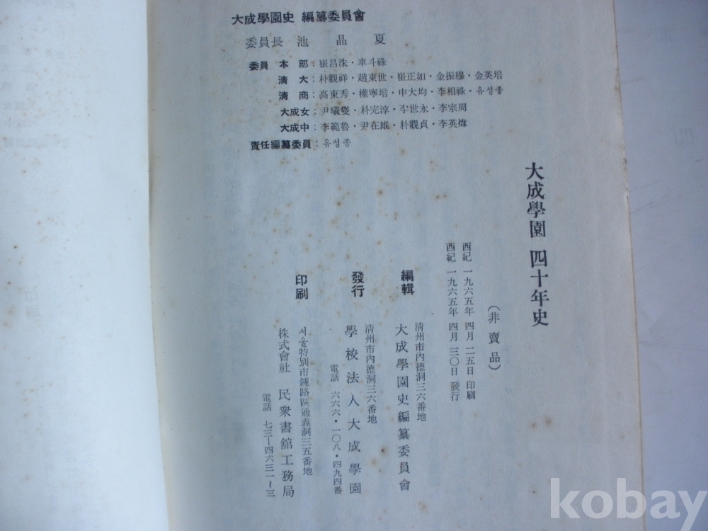 대성학원 40년사 (청주, 학교법인대성학원, 1965년)