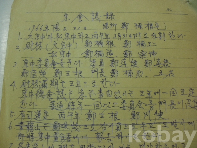 정씨 종회의록 - 대종중과 사종중하고 분할한다 등 (1966년)