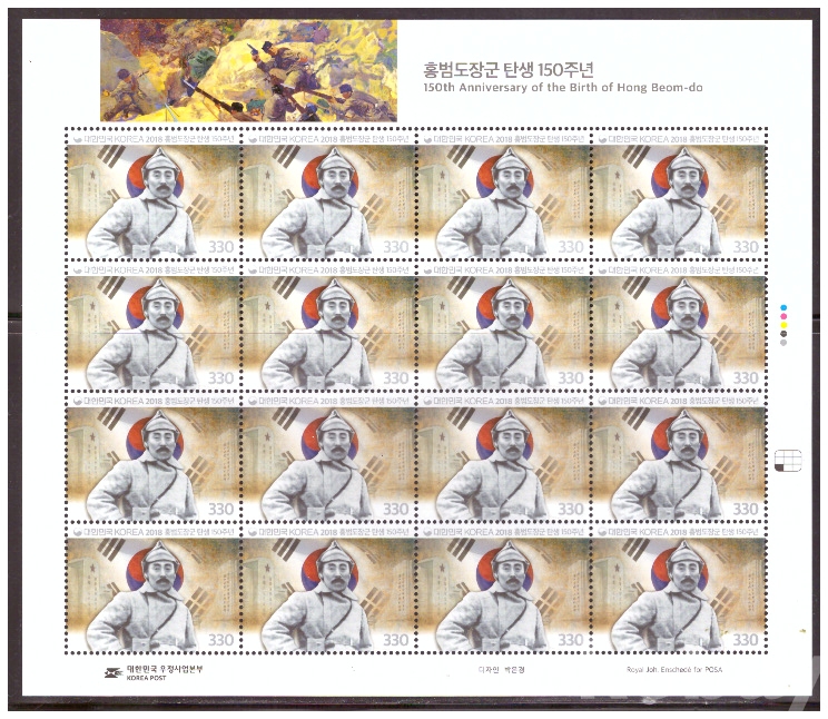 (한국전지) 2018.10.12 홍범도장군 탄생 150주년 sheet of 16 MNH