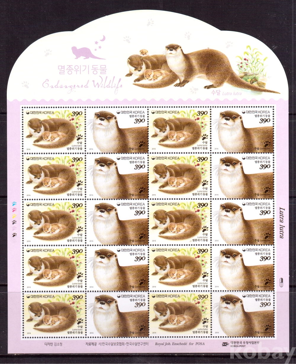 (한국전지) 2016.3.15 멸종위기동물 sheet of 20 MNH