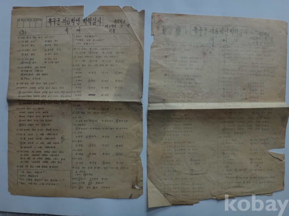 옥구군 제6학년 학력검사 - 국어, 산수 (2매일괄)